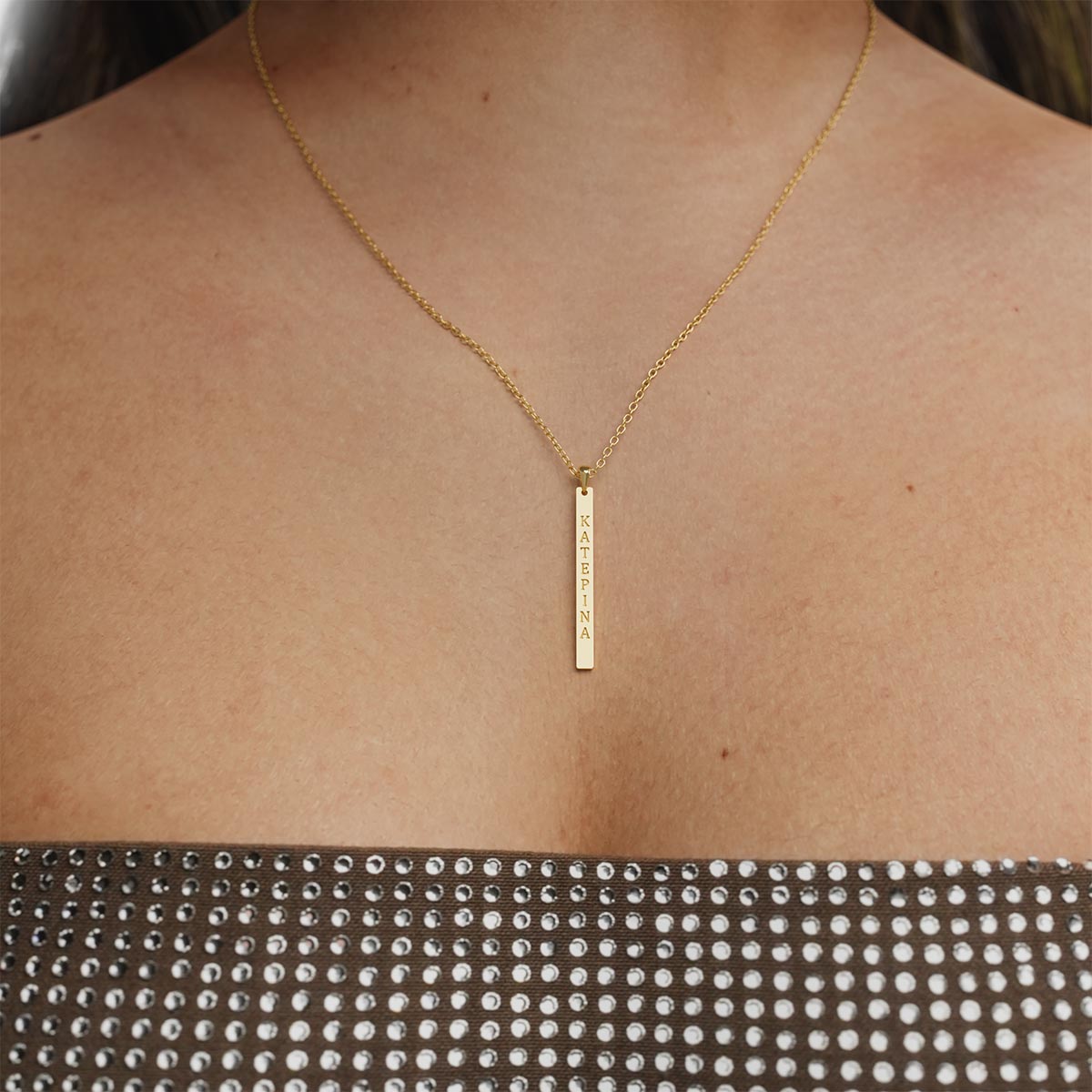 Vertical Bar Necklace with Greek Engraving