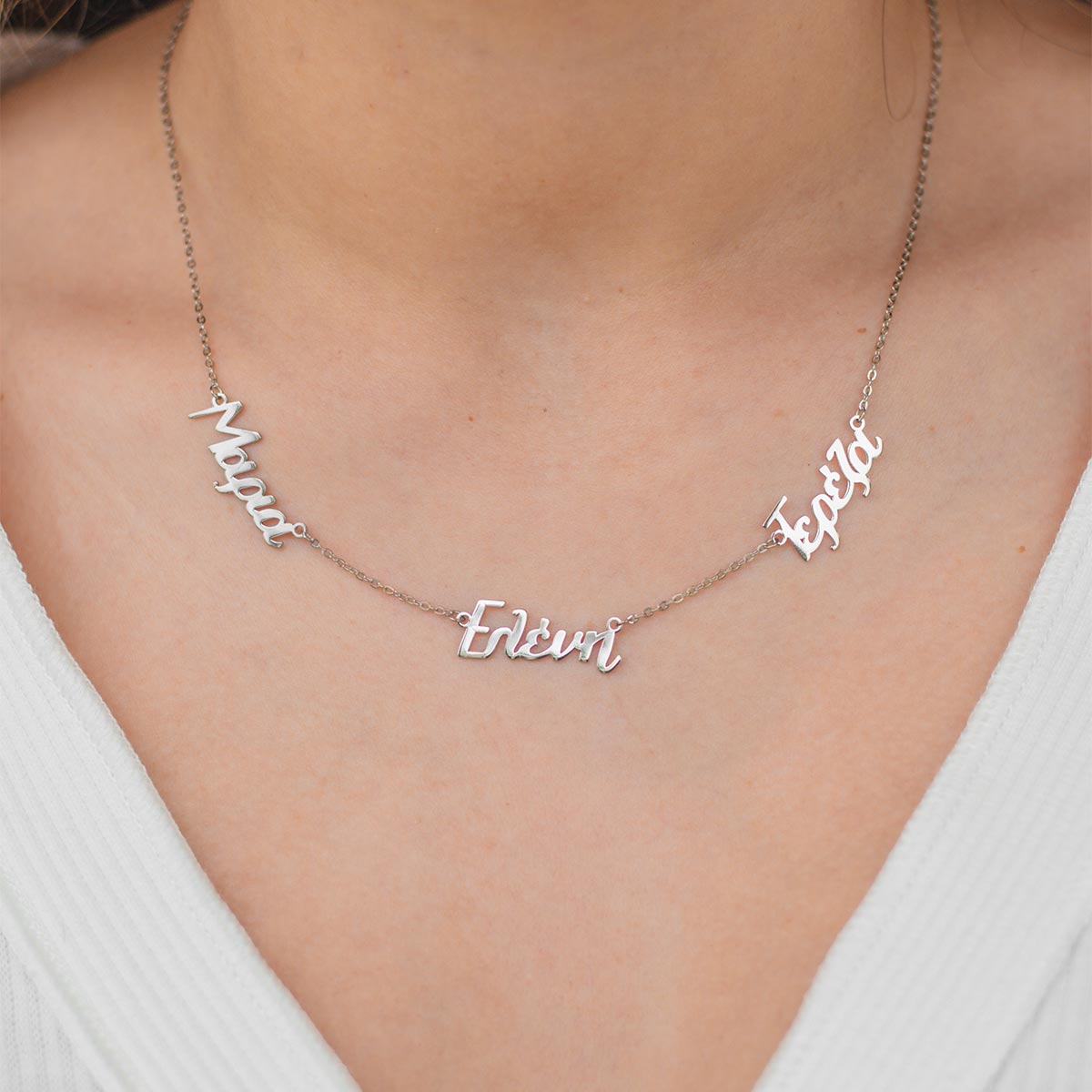 Greek Personalized 3 Name Necklace