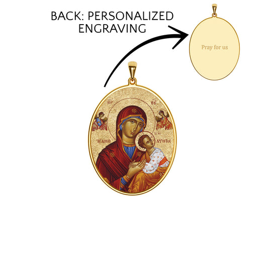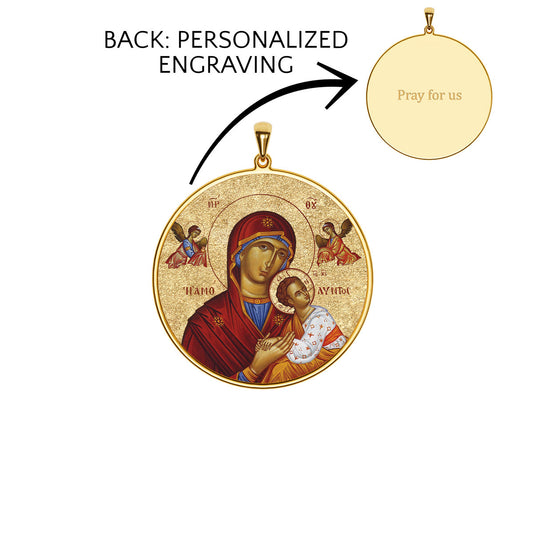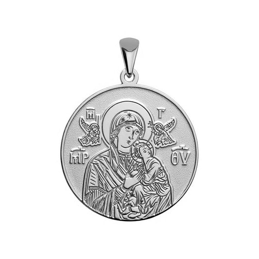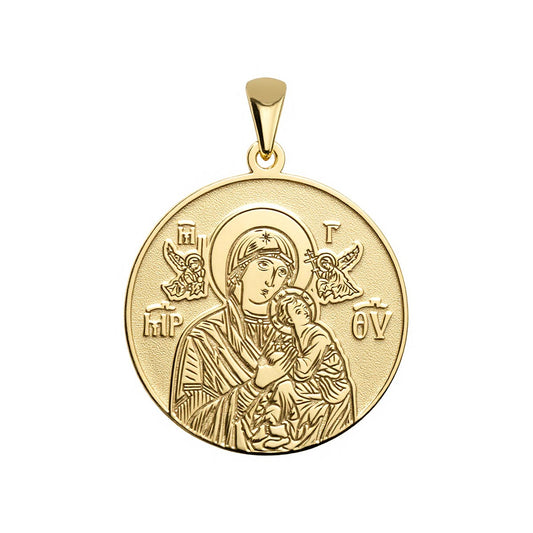 Virgin Mary Panagia Theotokos Orthodox Icon Sculpted Medium Pavé Round Medal