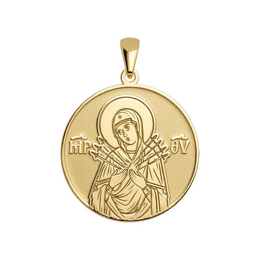 Our Lady of Sorrows Orthodox Icon Sculpted Round Medal