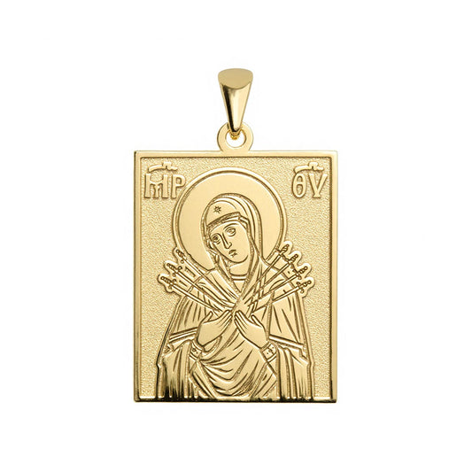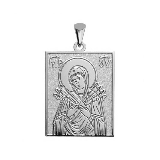 Our Lady of Sorrows Orthodox Icon Sculpted Tag Medal
