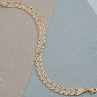 Diamond-Cut Two-Tone Greek Key Link Bracelet