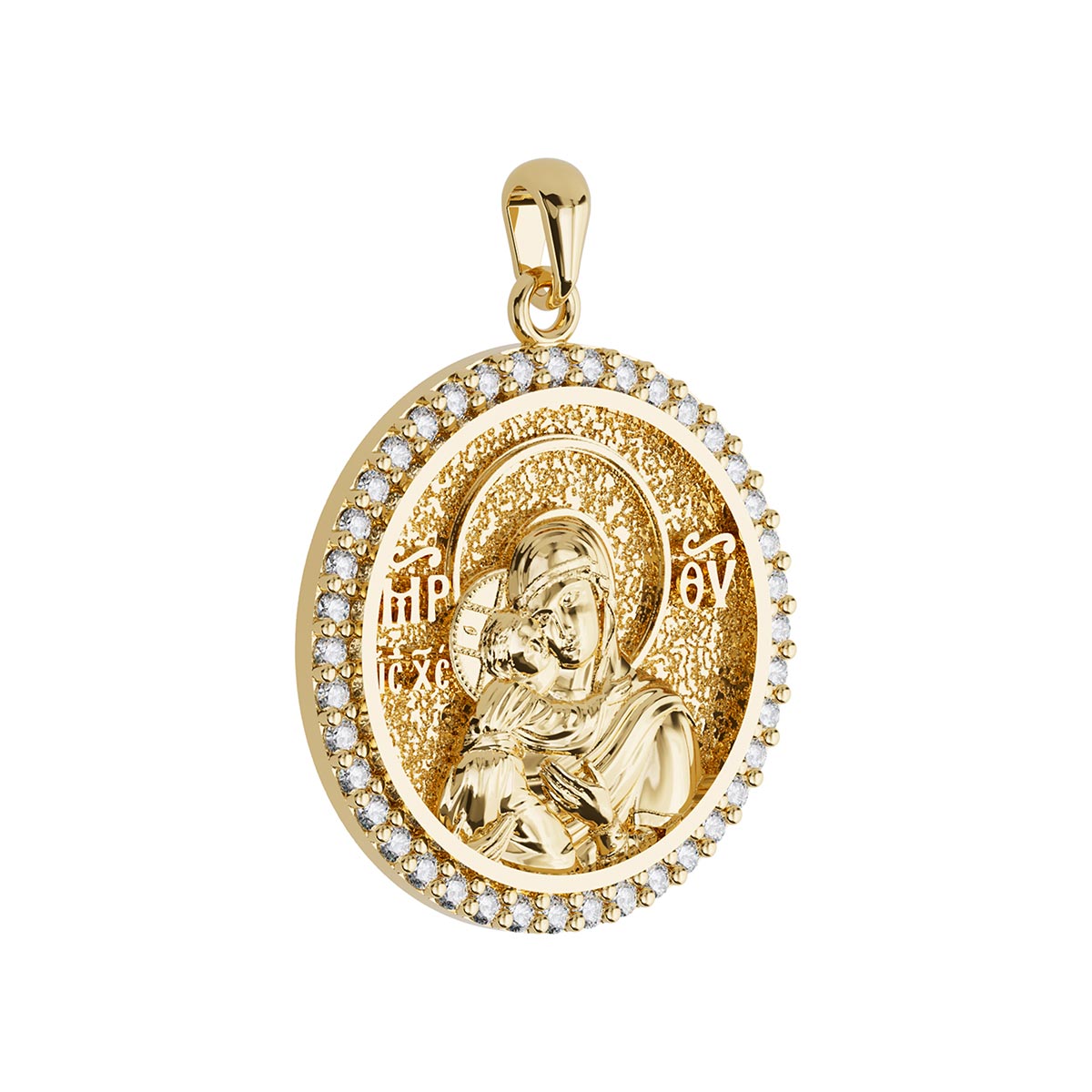Virgin Mary Panagia Theotokos Orthodox Icon Sculpted Medium Pavé Round Medal