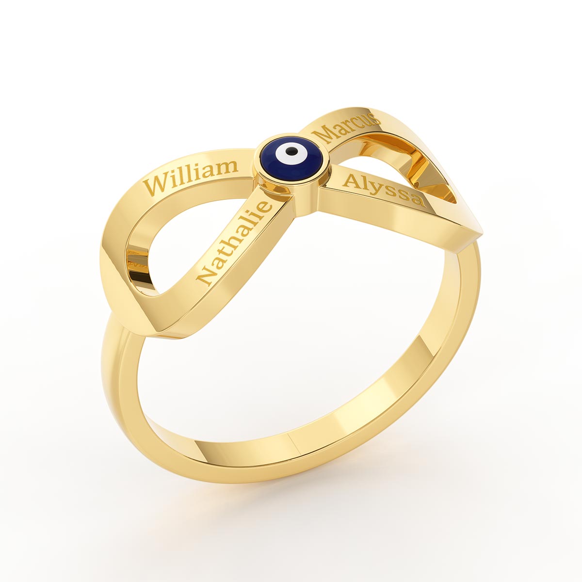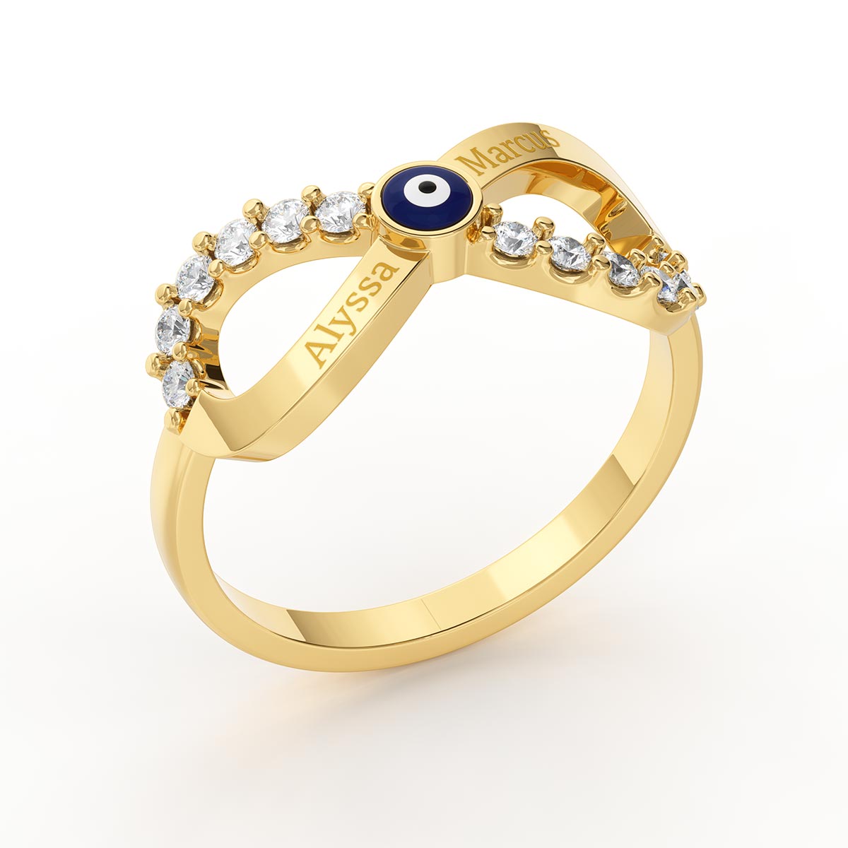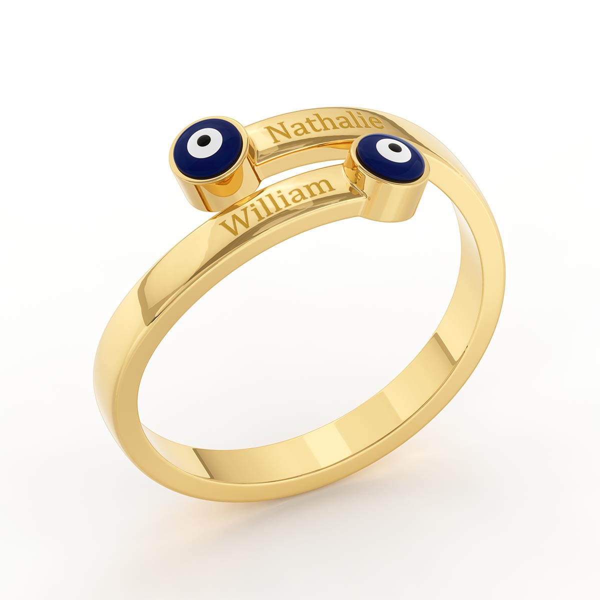 Double Evil Eye Bypass Ring with Personalized Engravings
