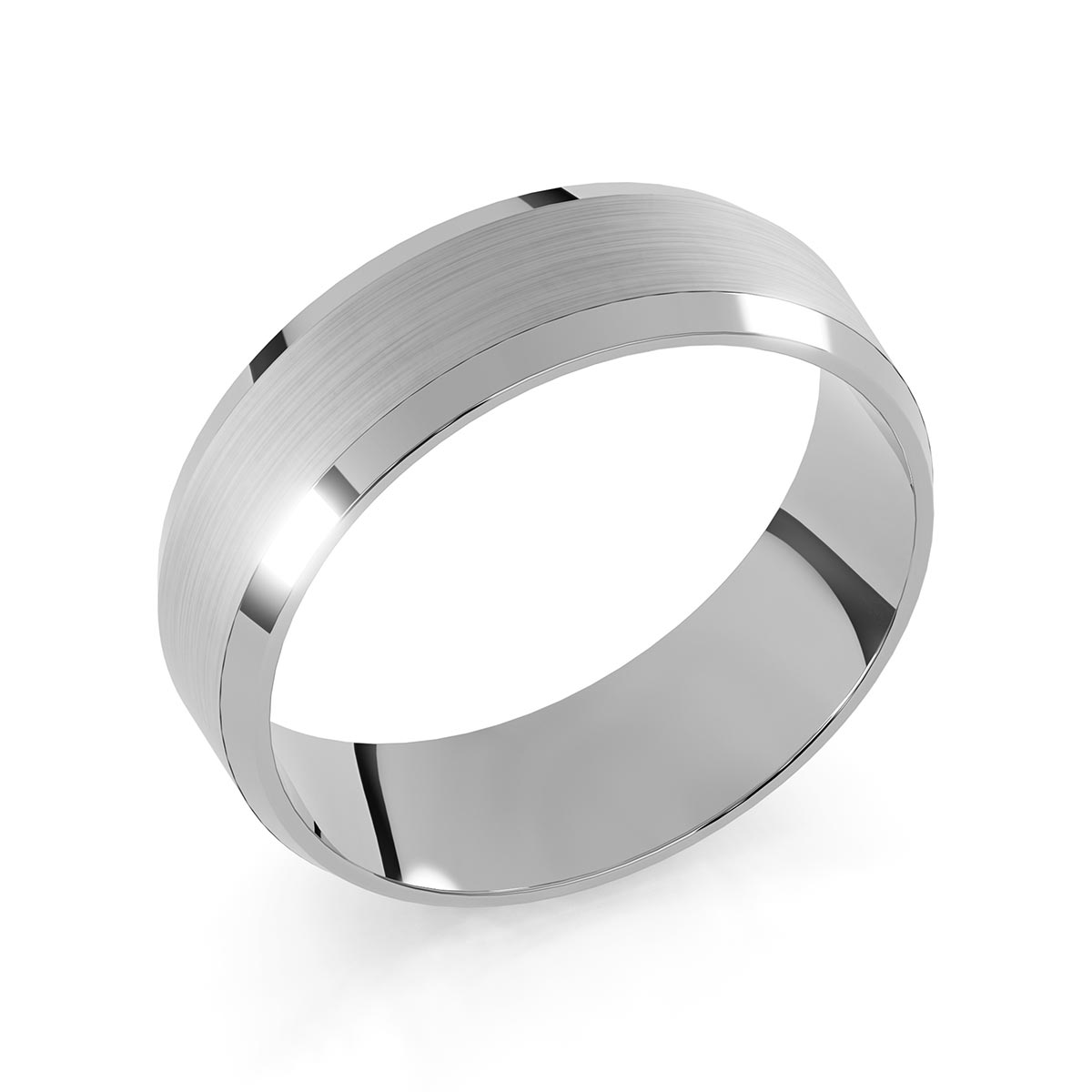 Comfort Fit 7MM Beveled Men's Wedding Ring with Wide Satin Inlay