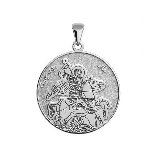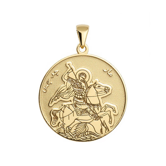 Saint George (Georgios) And the Dragon Orthodox Icon Sculpted Medium Pavé Round Medal