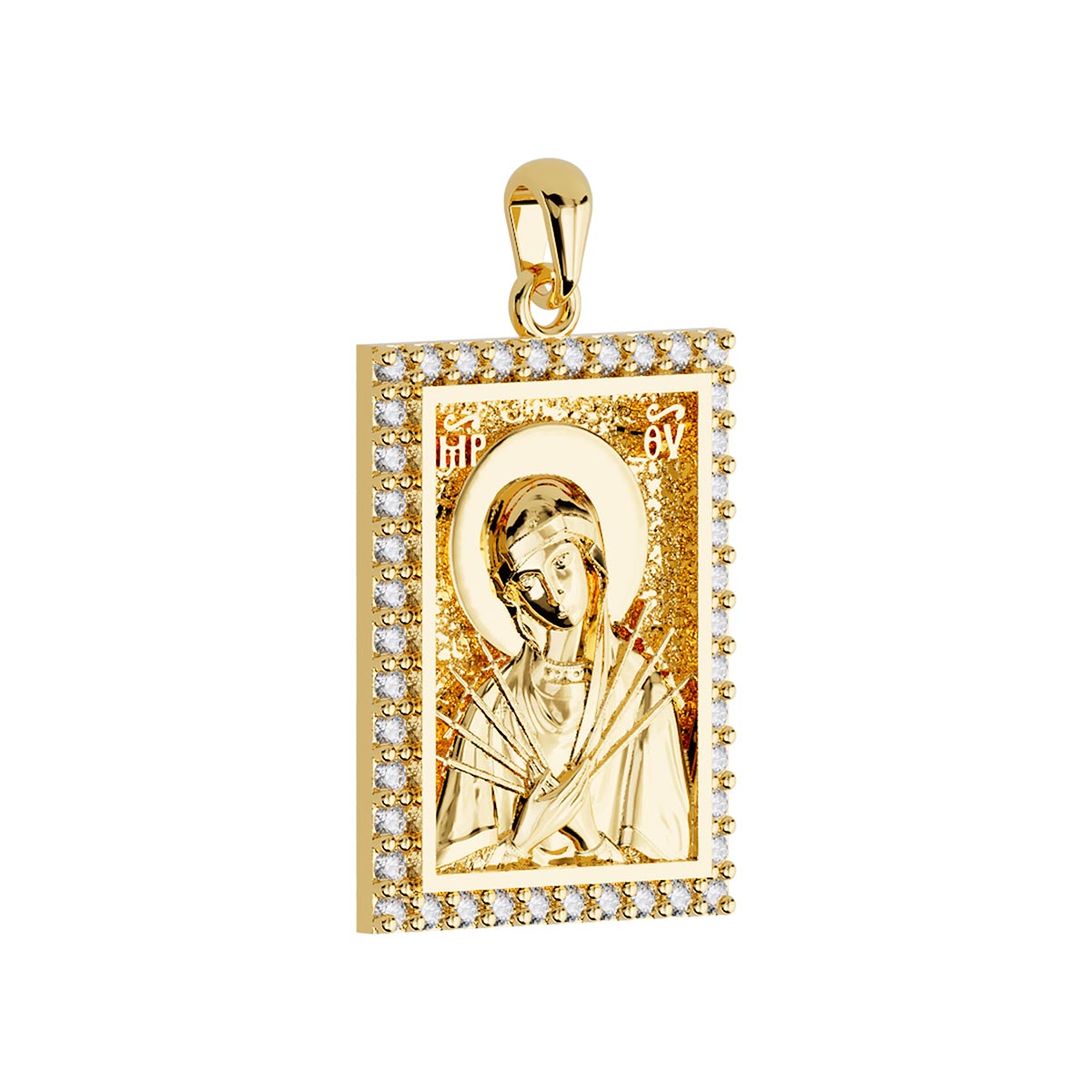 Our Lady of Sorrows Orthodox Icon Sculpted Medium Pavé Tag Medal