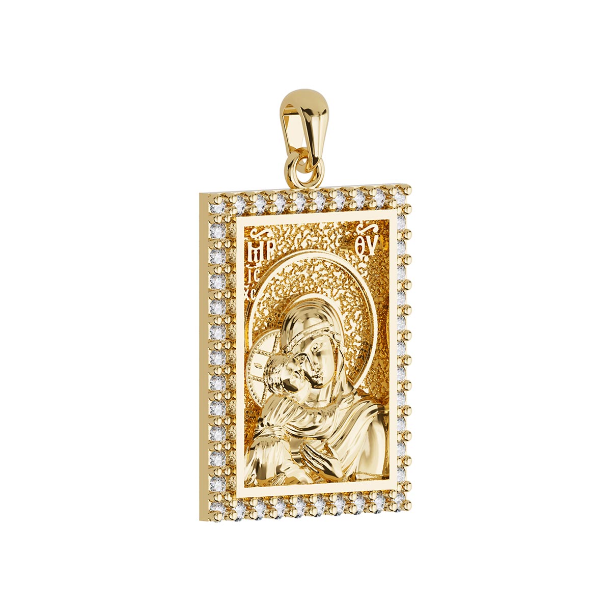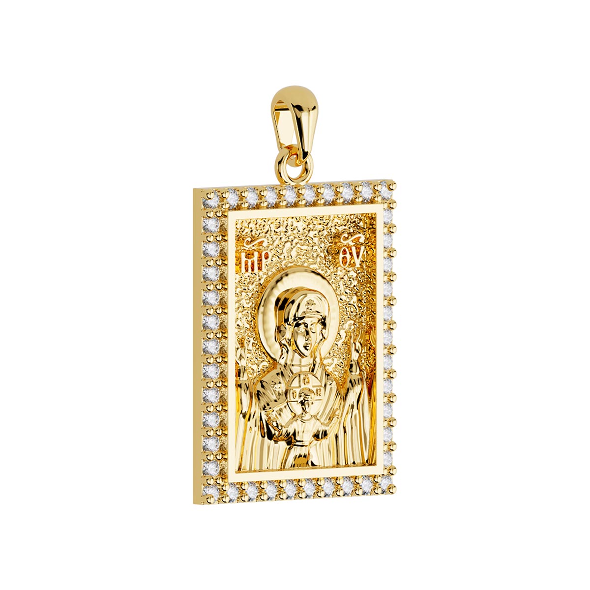 Virgin Mary Panagia Theotokos Orthodox Icon Sculpted Medium Pavé Tag Medal