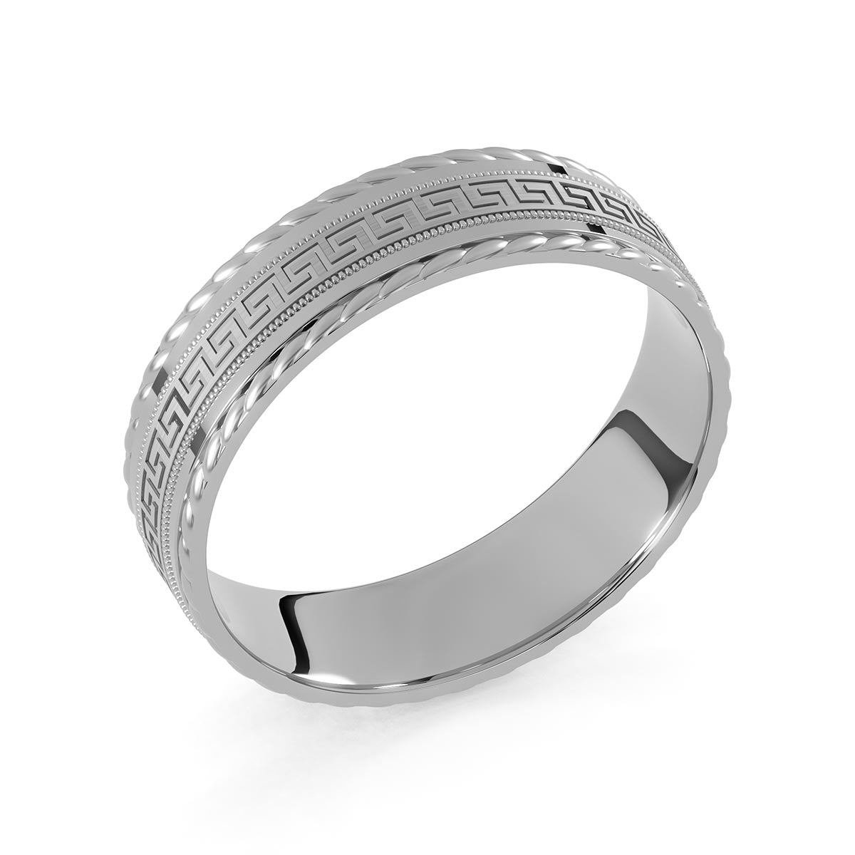 Comfort Fit 6MM Greek Key Inlay Wedding Ring with Roped Edges