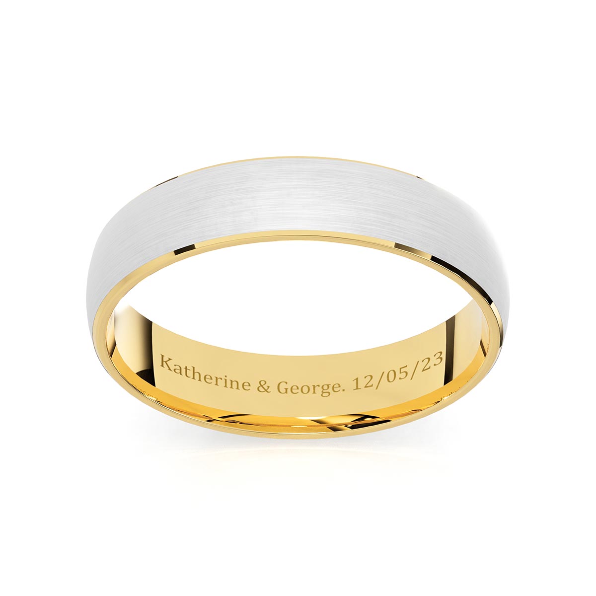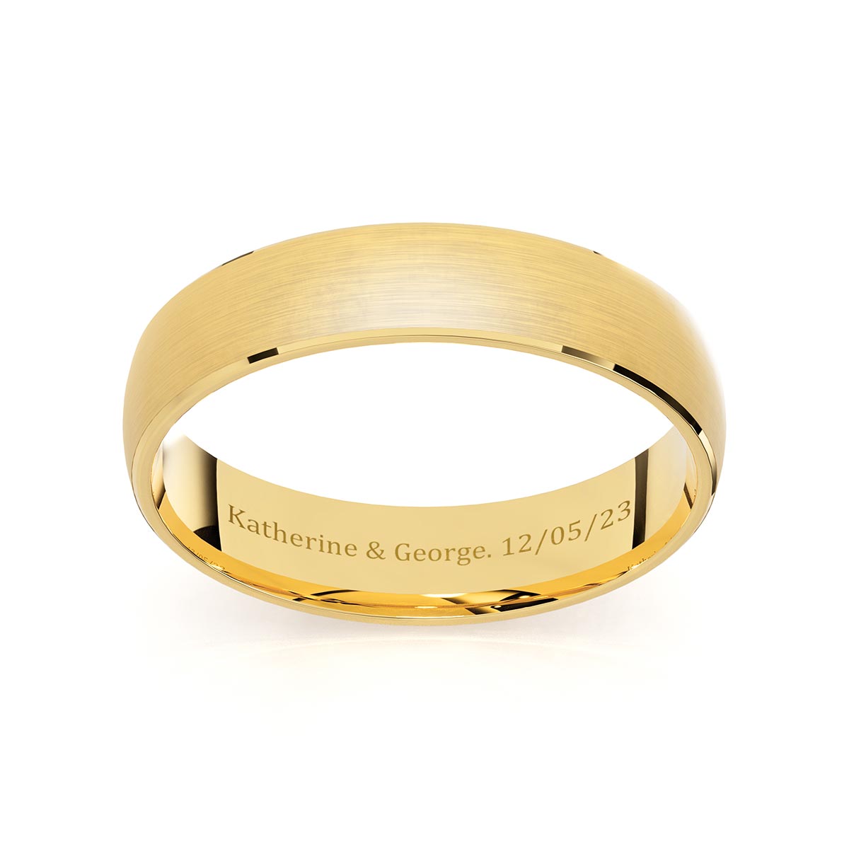 Introducing our Comfort Fit 5mm Wedding Ring with Wide Satin Inlay, a captivating fusion of classic design and contemporary style. This meticulously crafted band features a wide satin inlay, adding a touch of luxury to the detailing. The 5mm width ensures a perfect balance, while the comfort fit design guarantees a delightful feel on your finger. Choose your solid gold to tailor this exquisite piece to your personal preference, showcasing your unique style with grace. Make your Wedding Ring even more special by opting for a personalized engraving inside, turning it into a timeless symbol of enduring love and cherished memories.