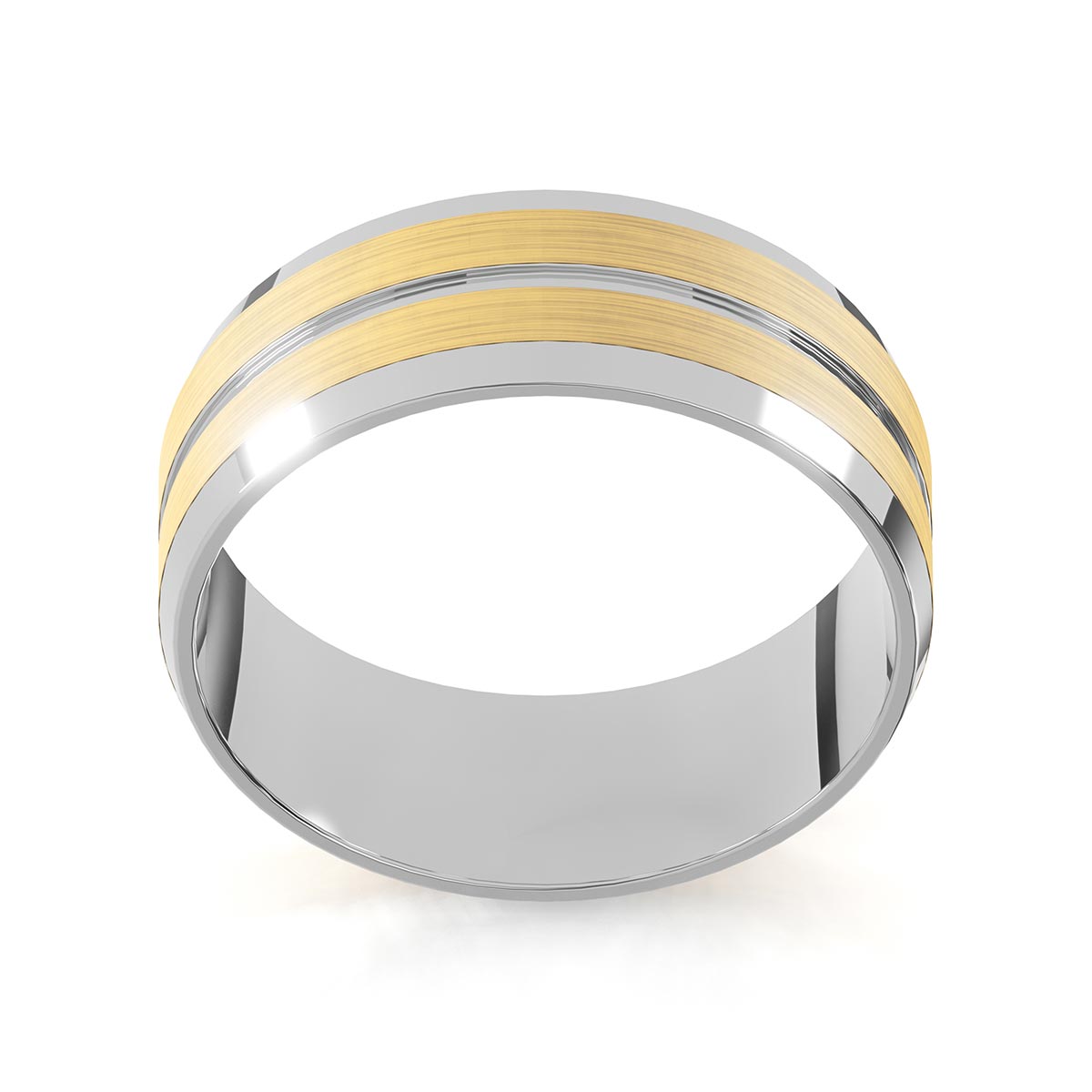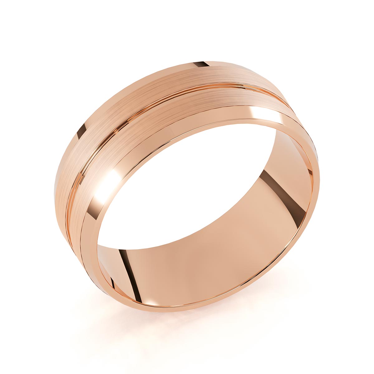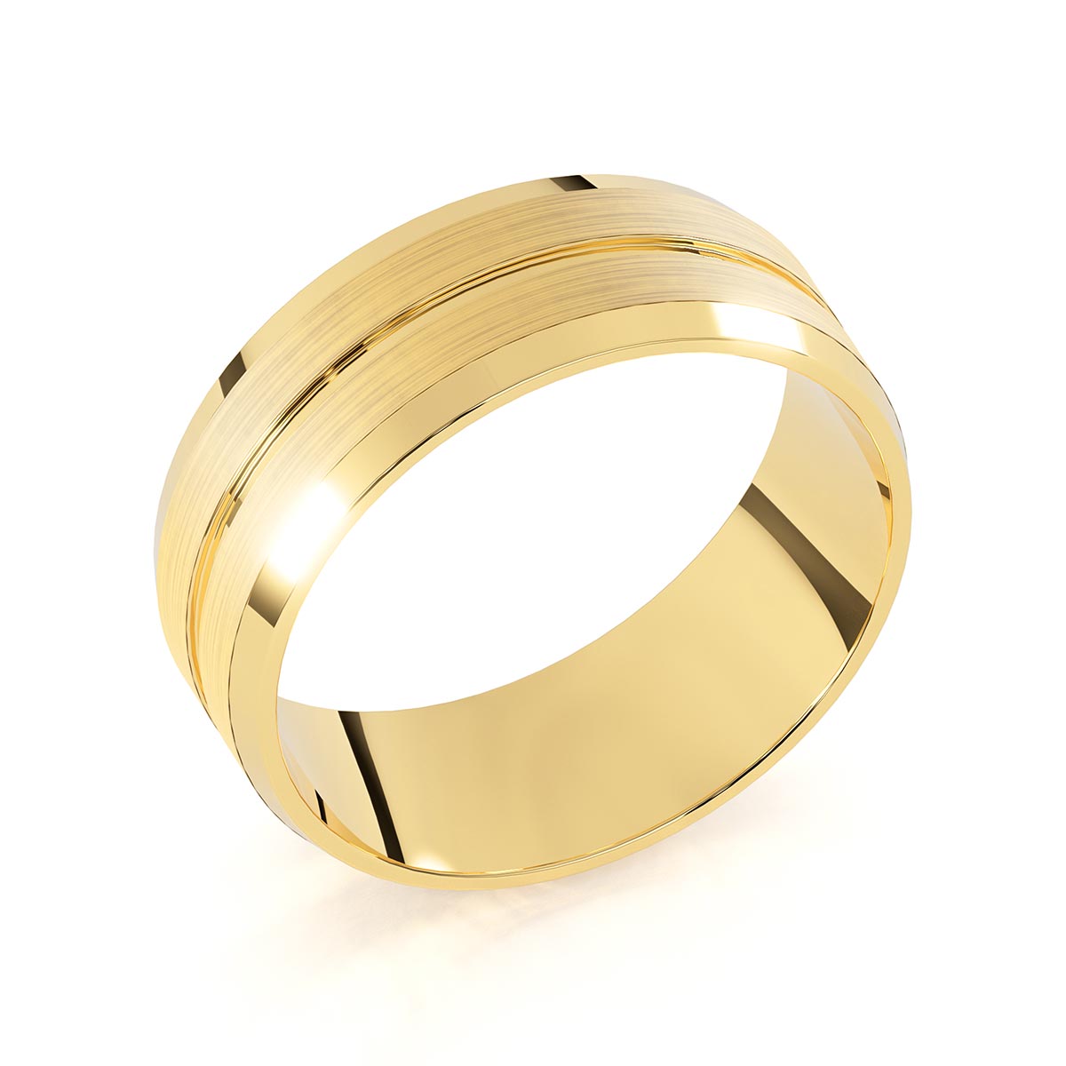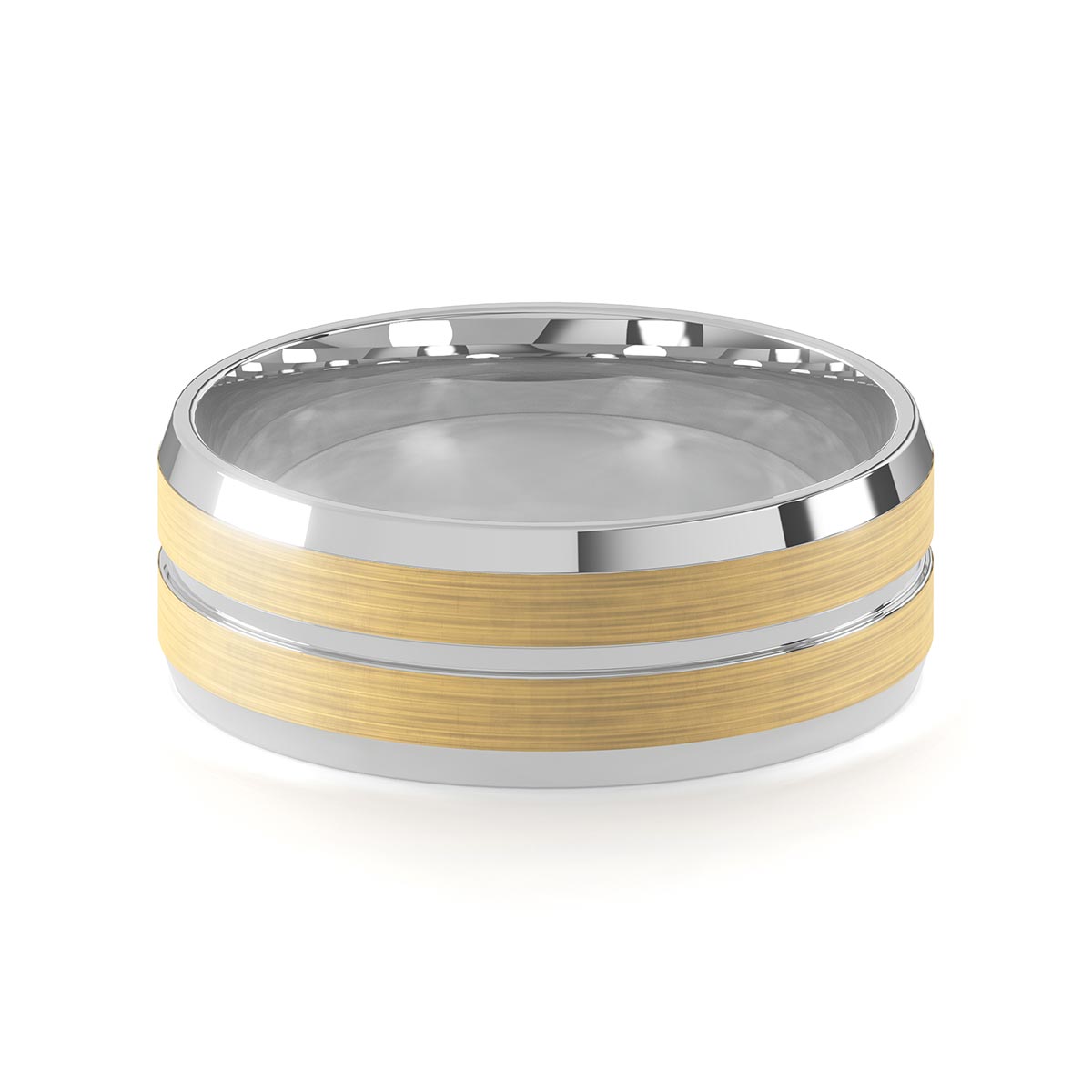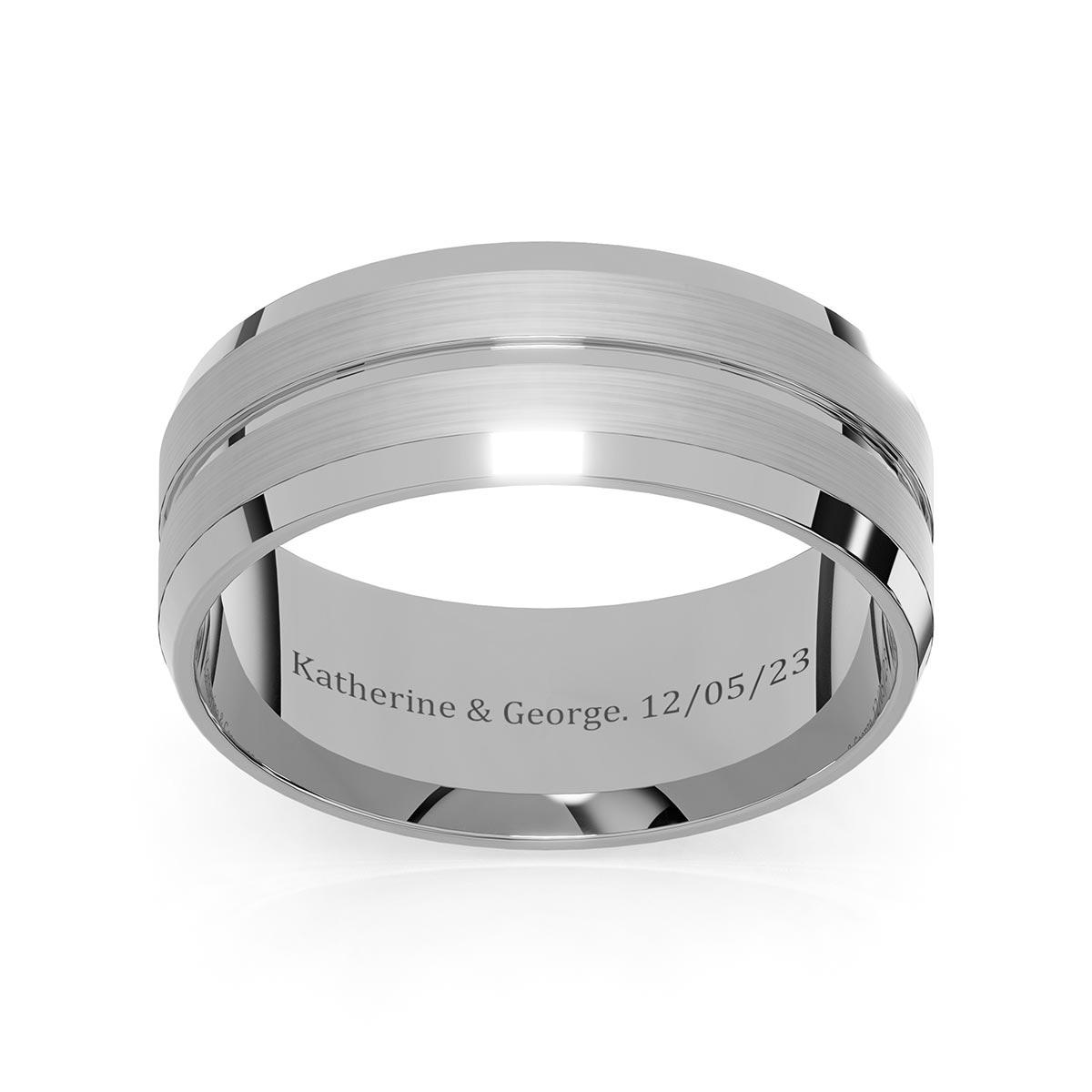 Comfort Fit 8MM Beveled Men's Wedding Ring with Narrow Inlay