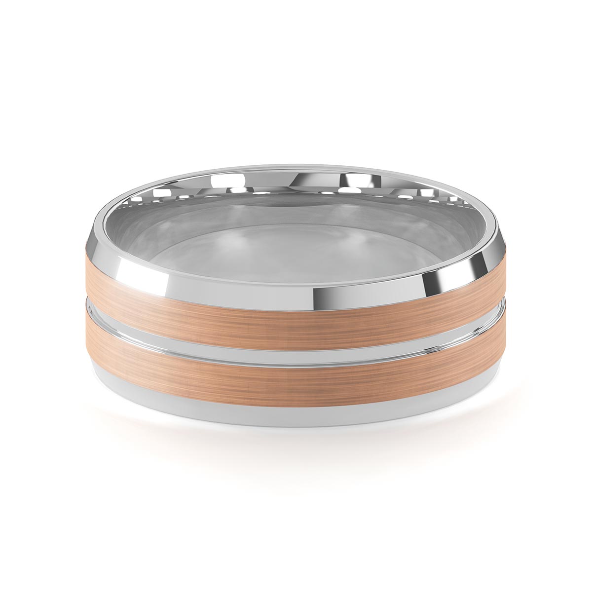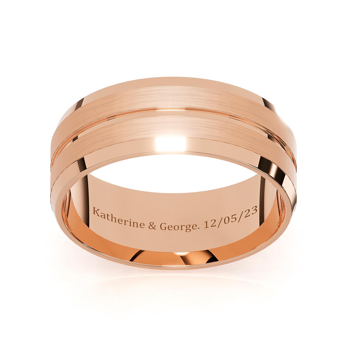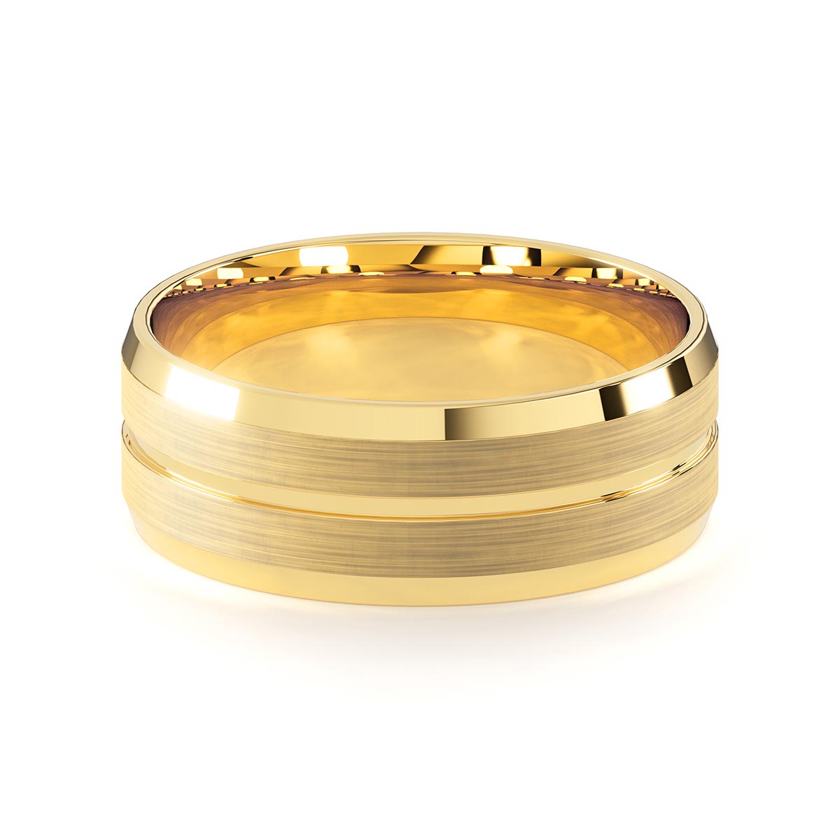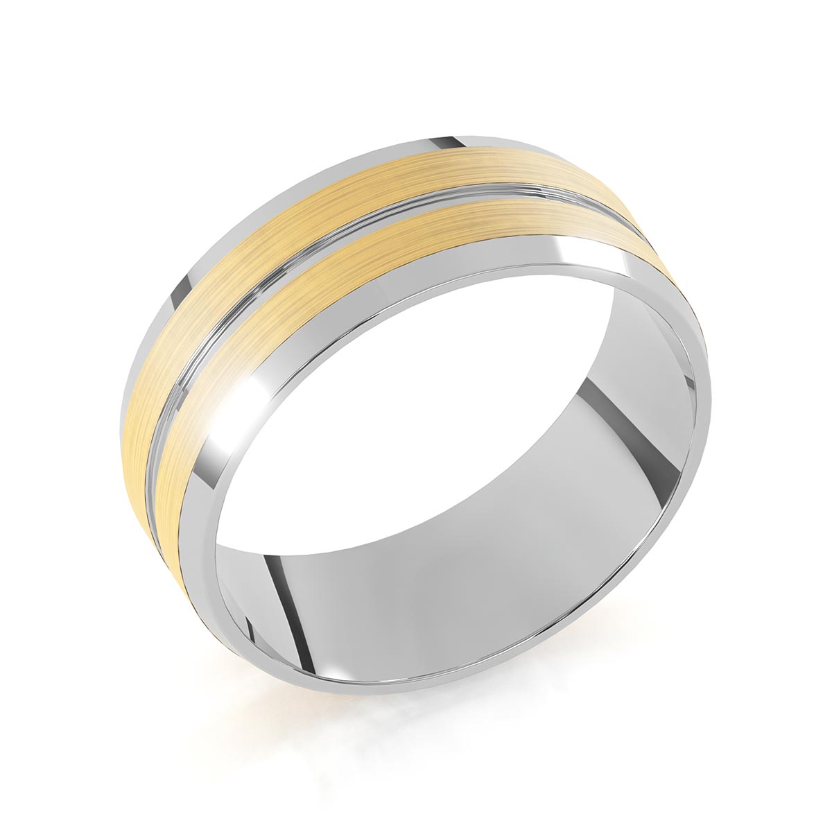 Comfort Fit 8MM Beveled Men's Wedding Ring with Narrow Inlay