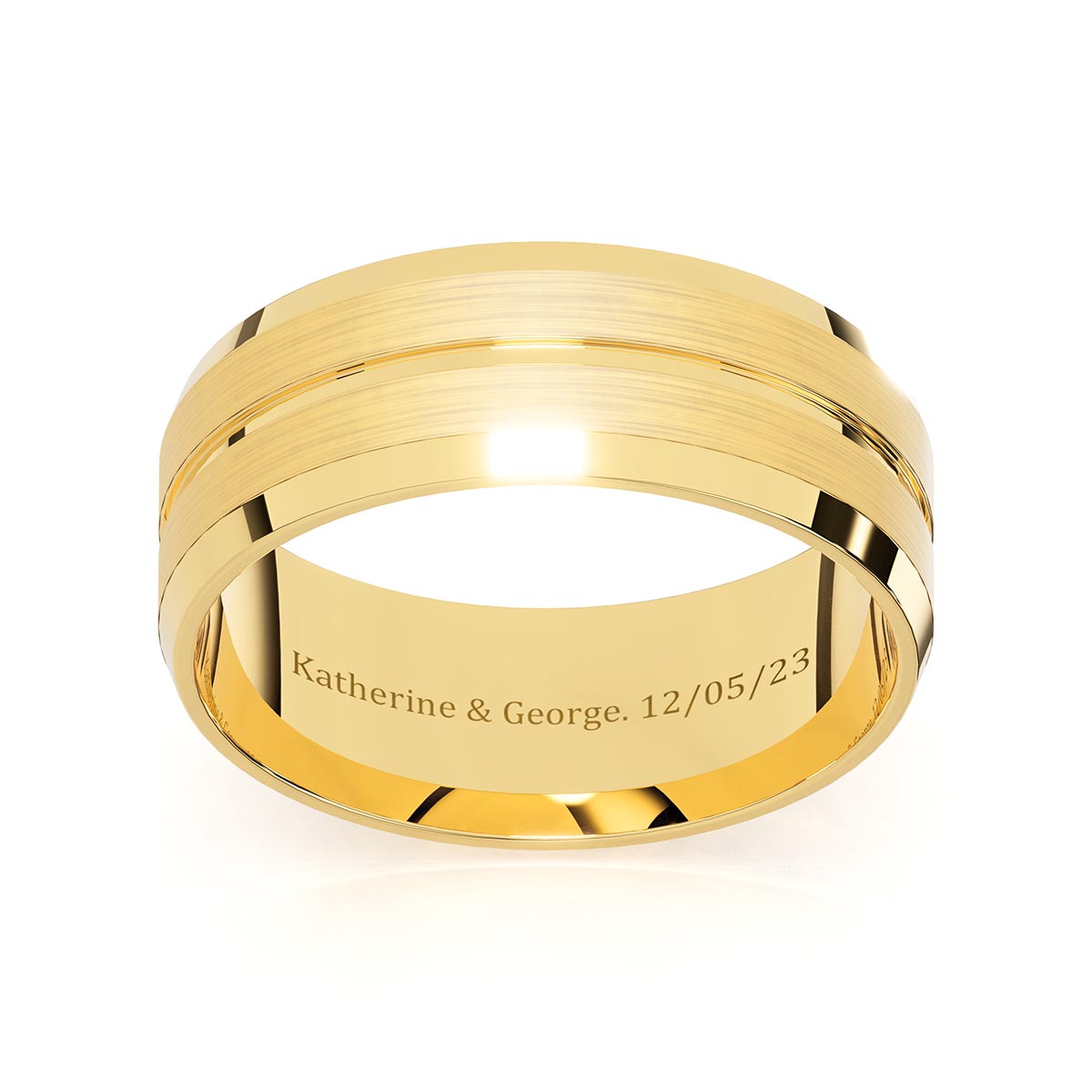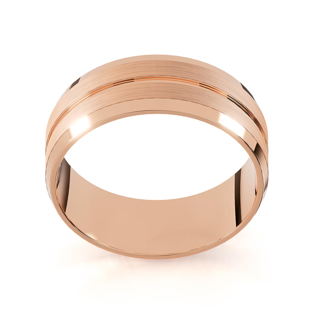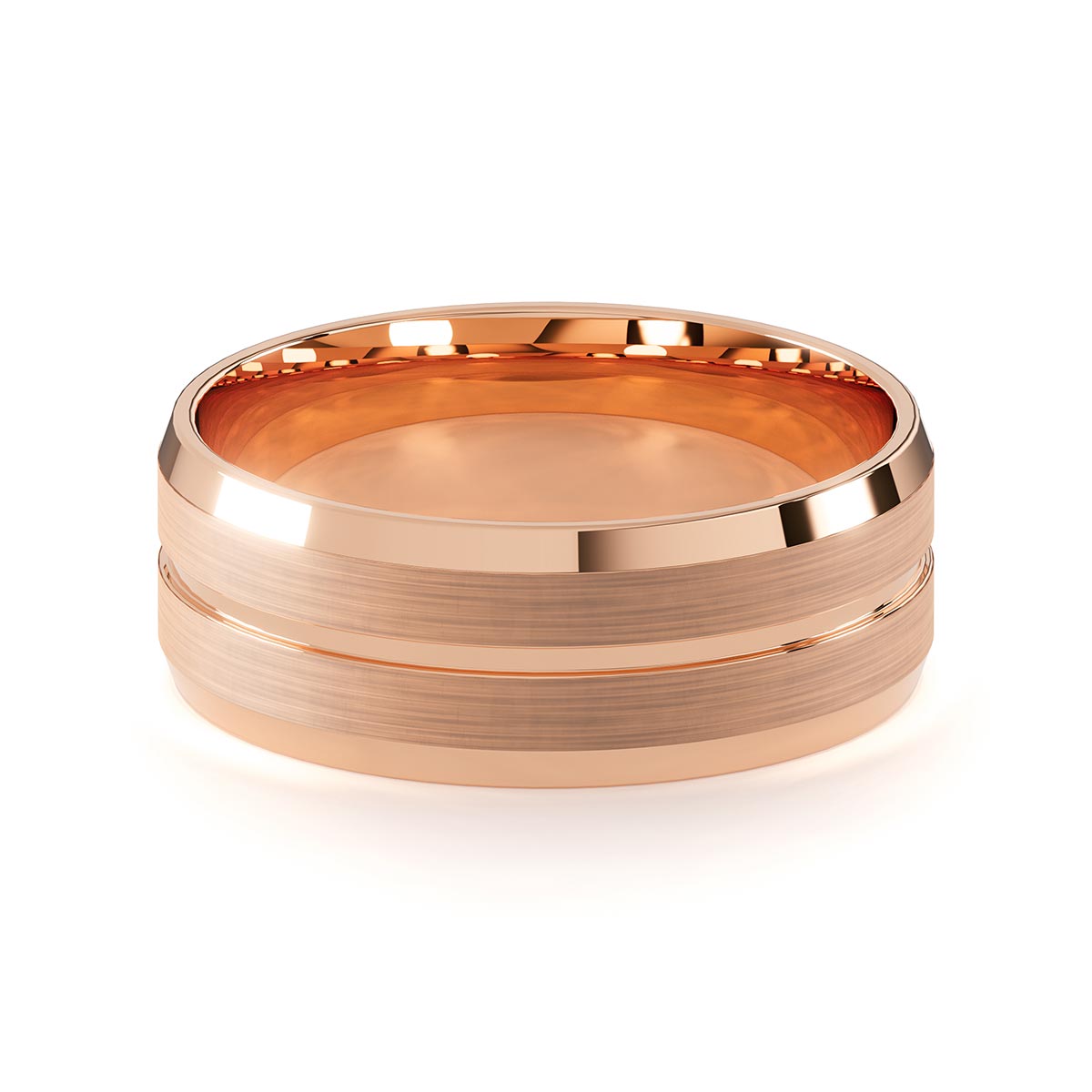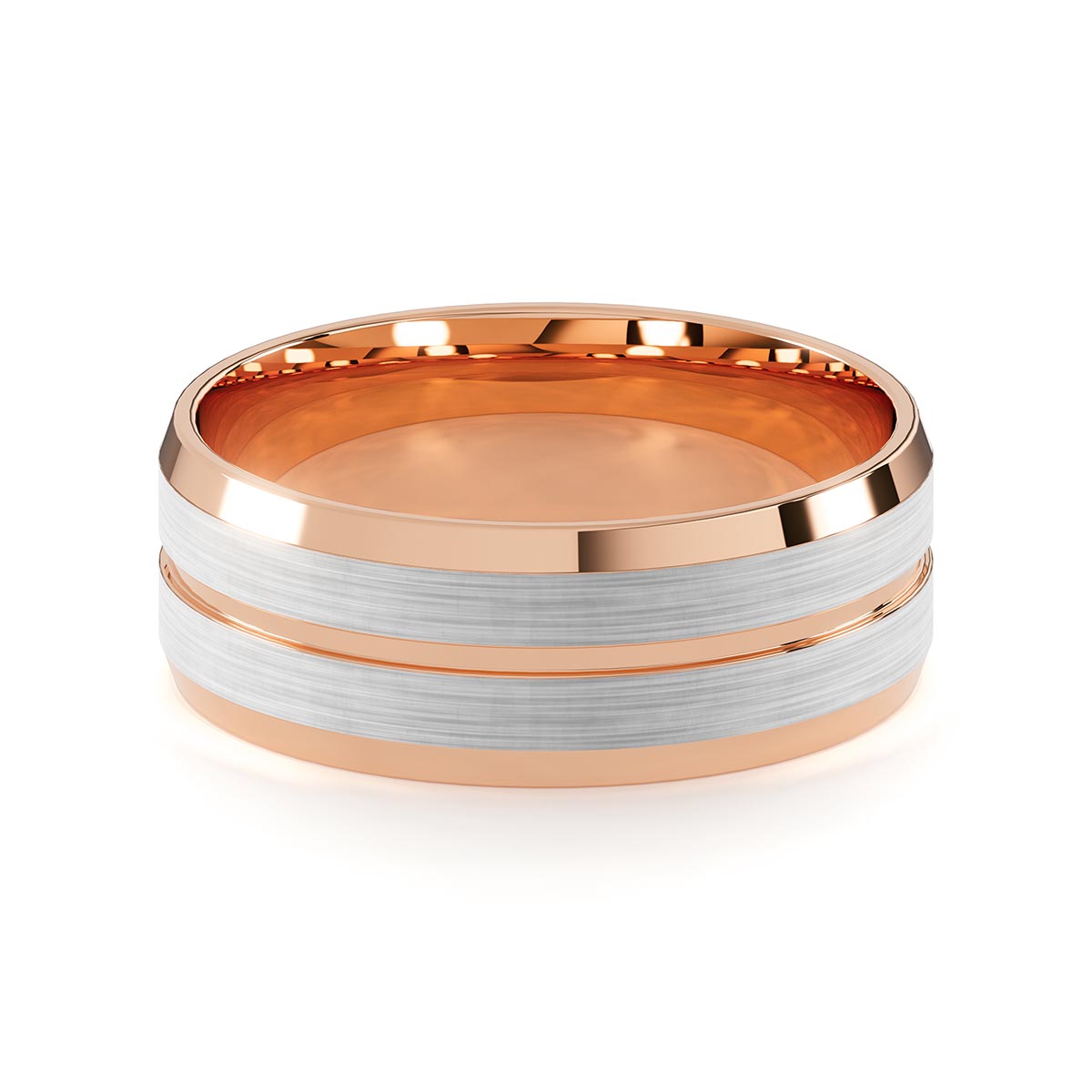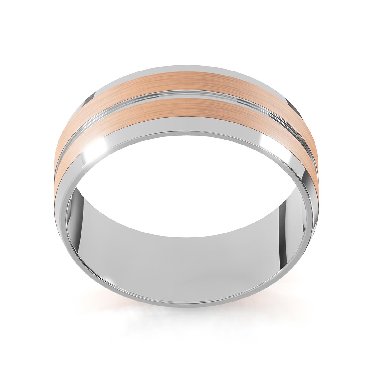 Comfort Fit 8MM Beveled Men's Wedding Ring with Narrow Inlay