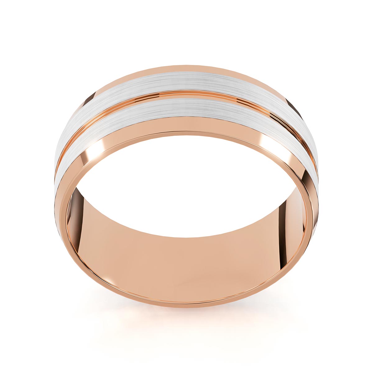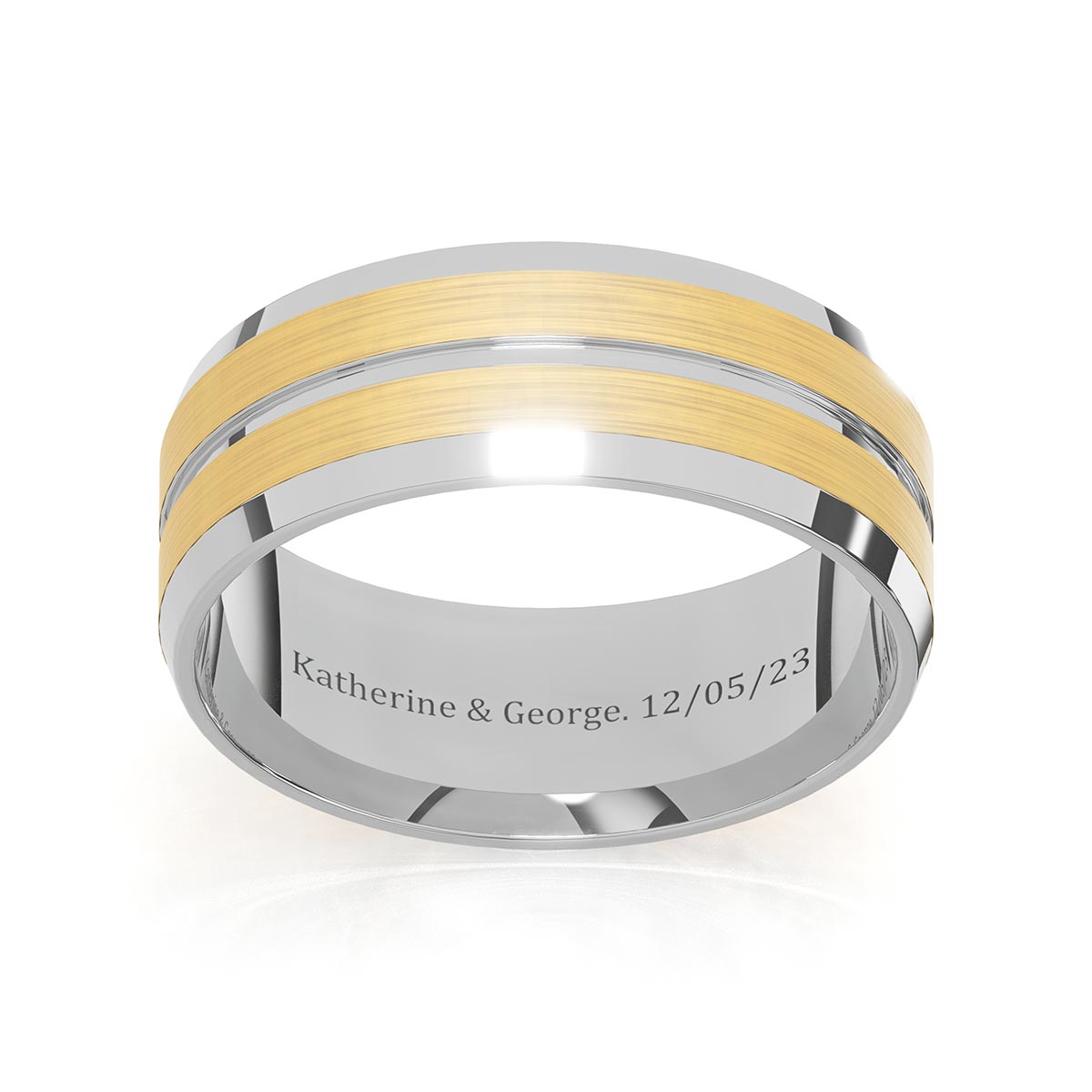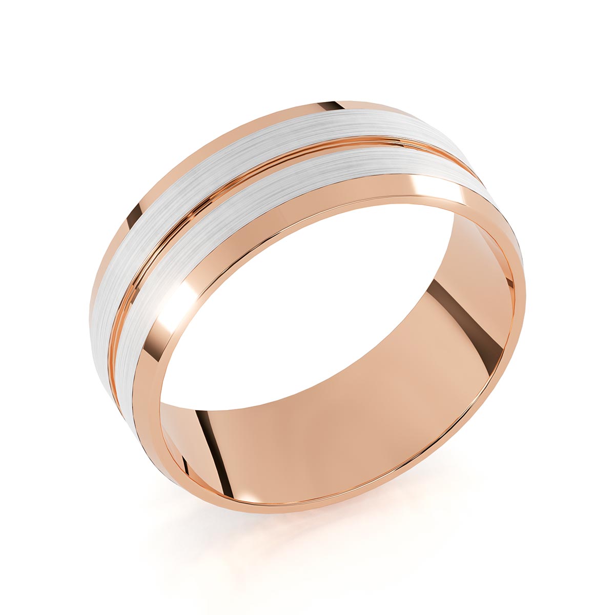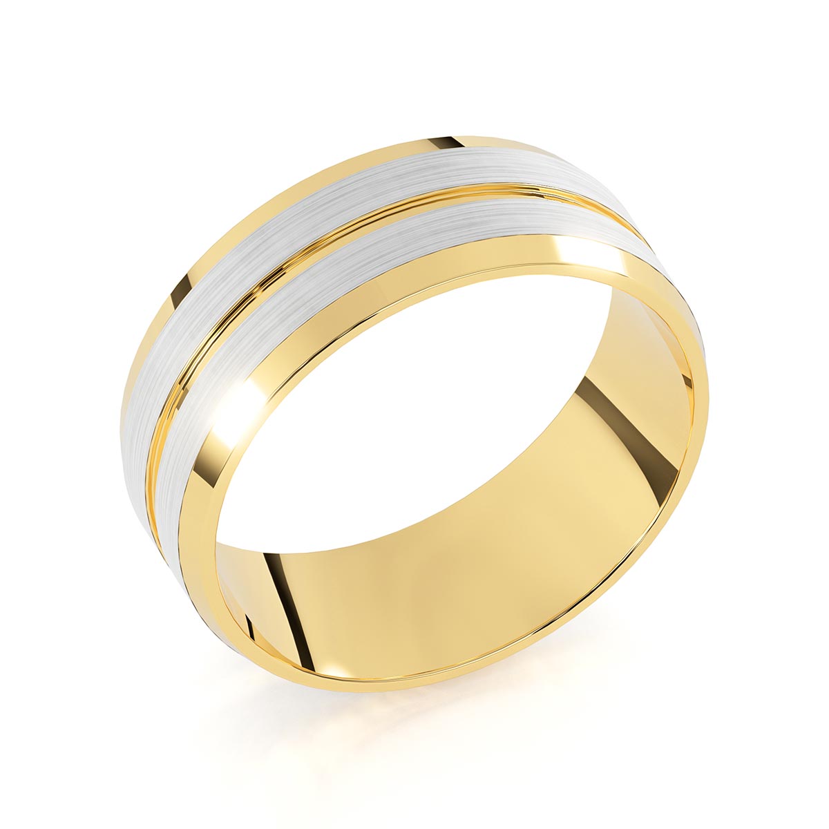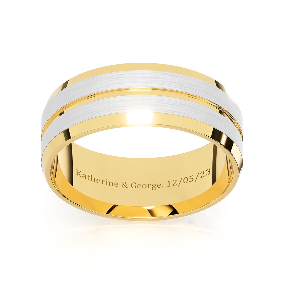 Comfort Fit 8MM Beveled Men's Wedding Ring with Narrow Inlay