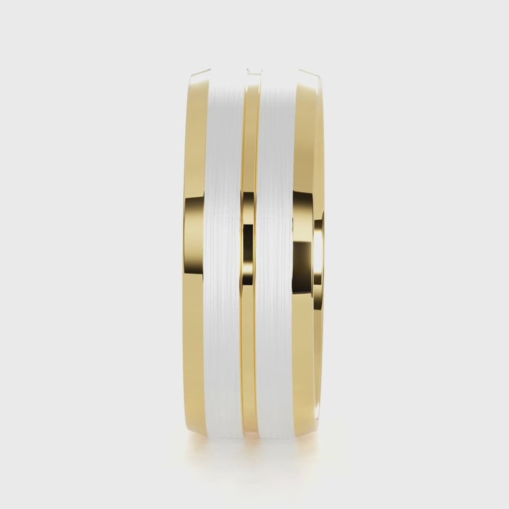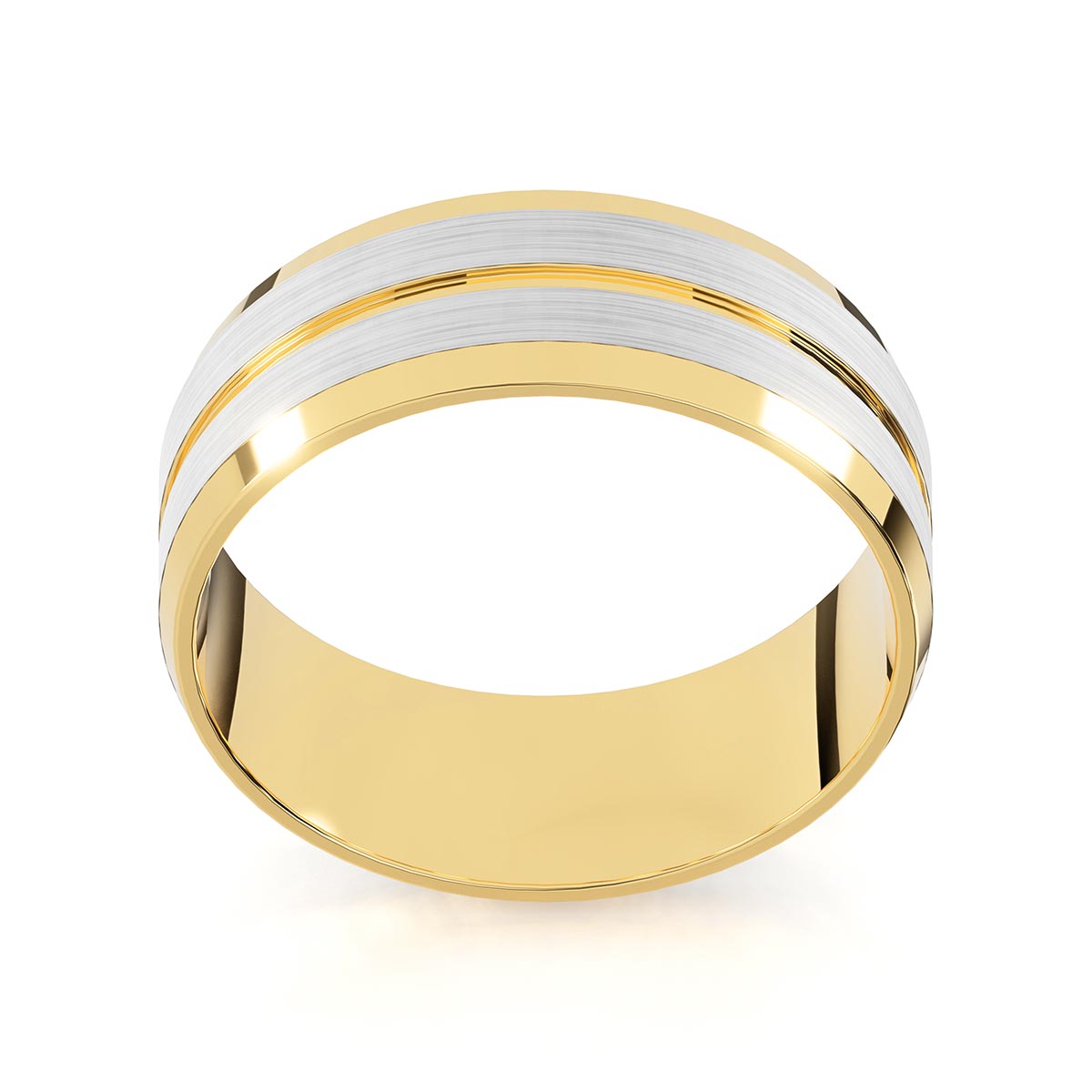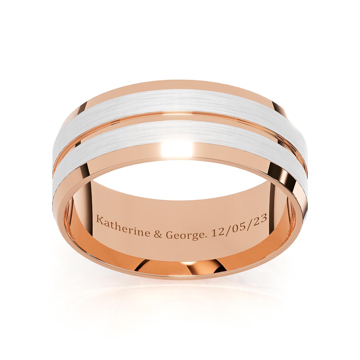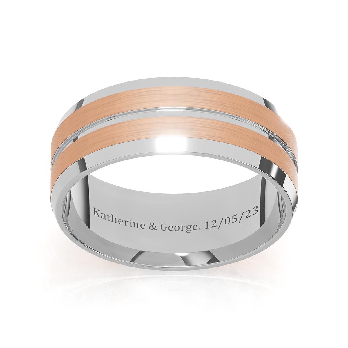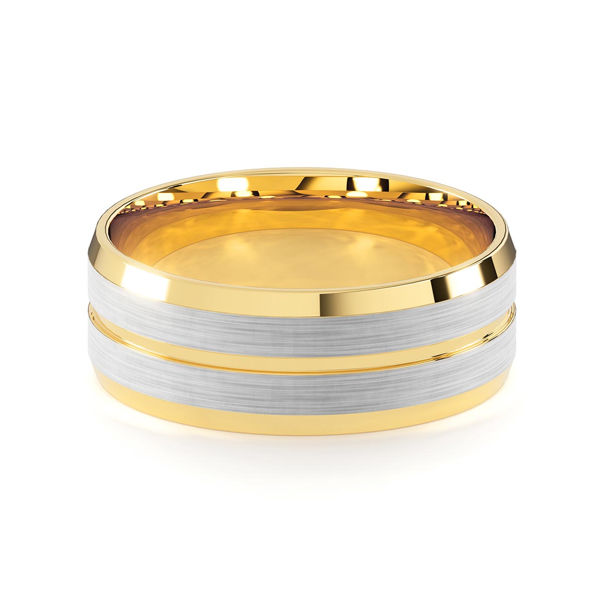 Comfort Fit 8MM Beveled Men's Wedding Ring with Narrow Inlay