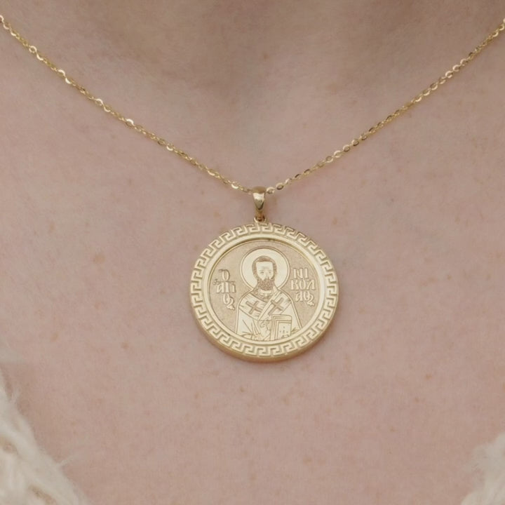 Custom Greek Orthodox Icon Greek Key Round Frame Pendant