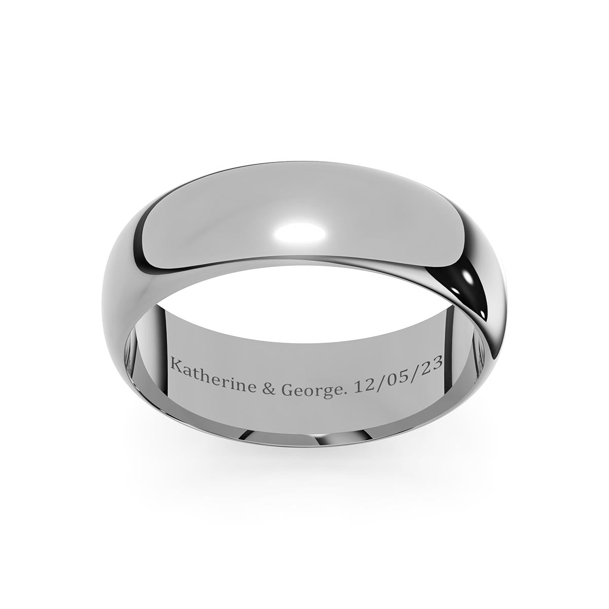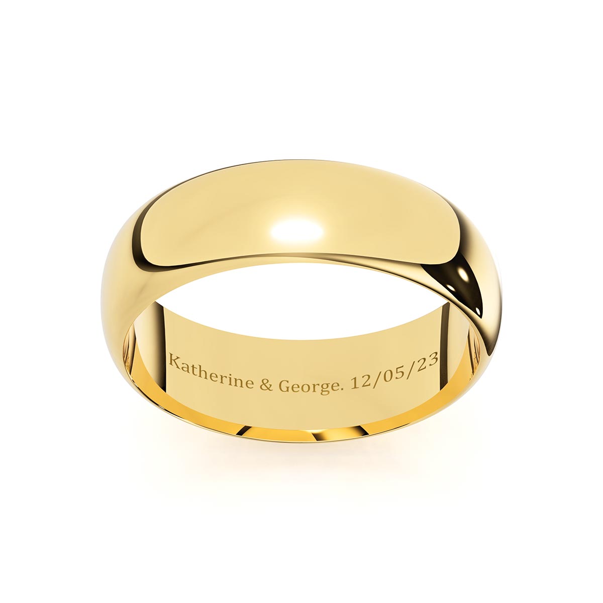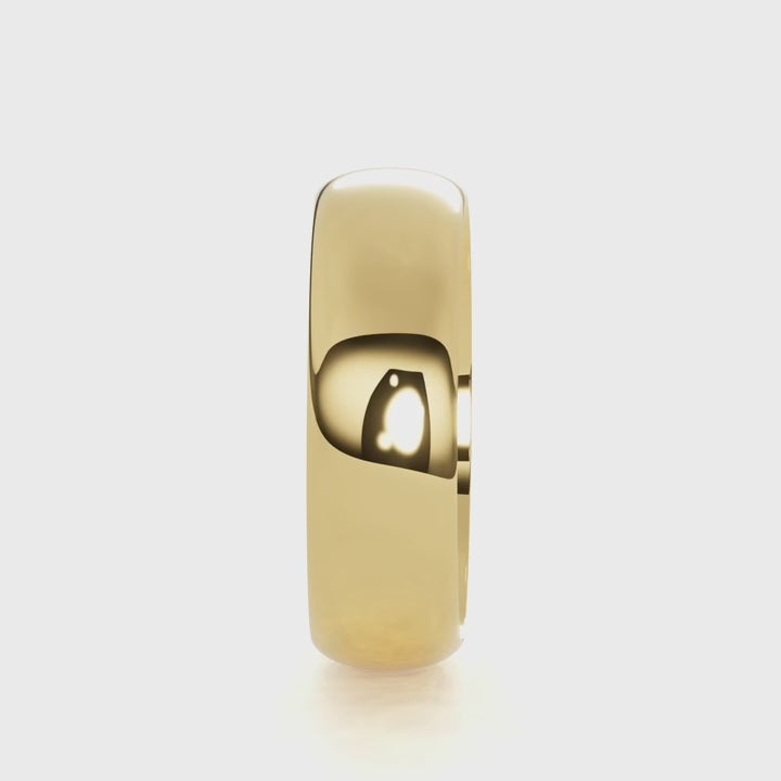 Introducing our Dome Comfort Fit 6mm Classic Wedding Band, a timeless symbol of love and commitment. Crafted with utmost care, this band offers a luxurious comfort fit, ensuring a comfortable feel on your finger. Its curved domed profile adds an elegant touch, while the choice between solid gold or platinum allows you to express your unique style. To make it even more special, personalize your band with a heartfelt engraving inside! With its exceptional craftsmanship and personalization options, this wedding band is the perfect embodiment of enduring love and cherished memories.