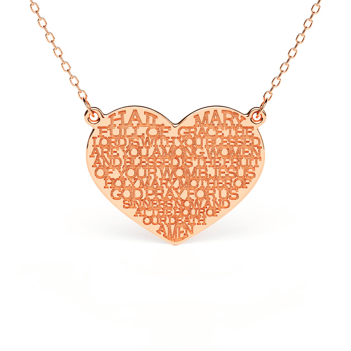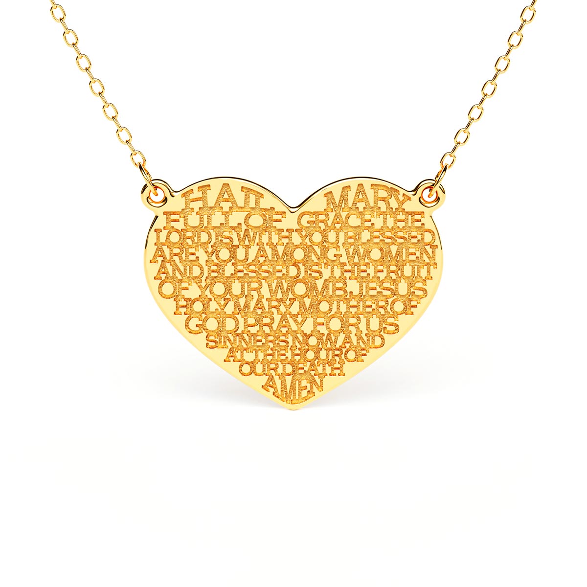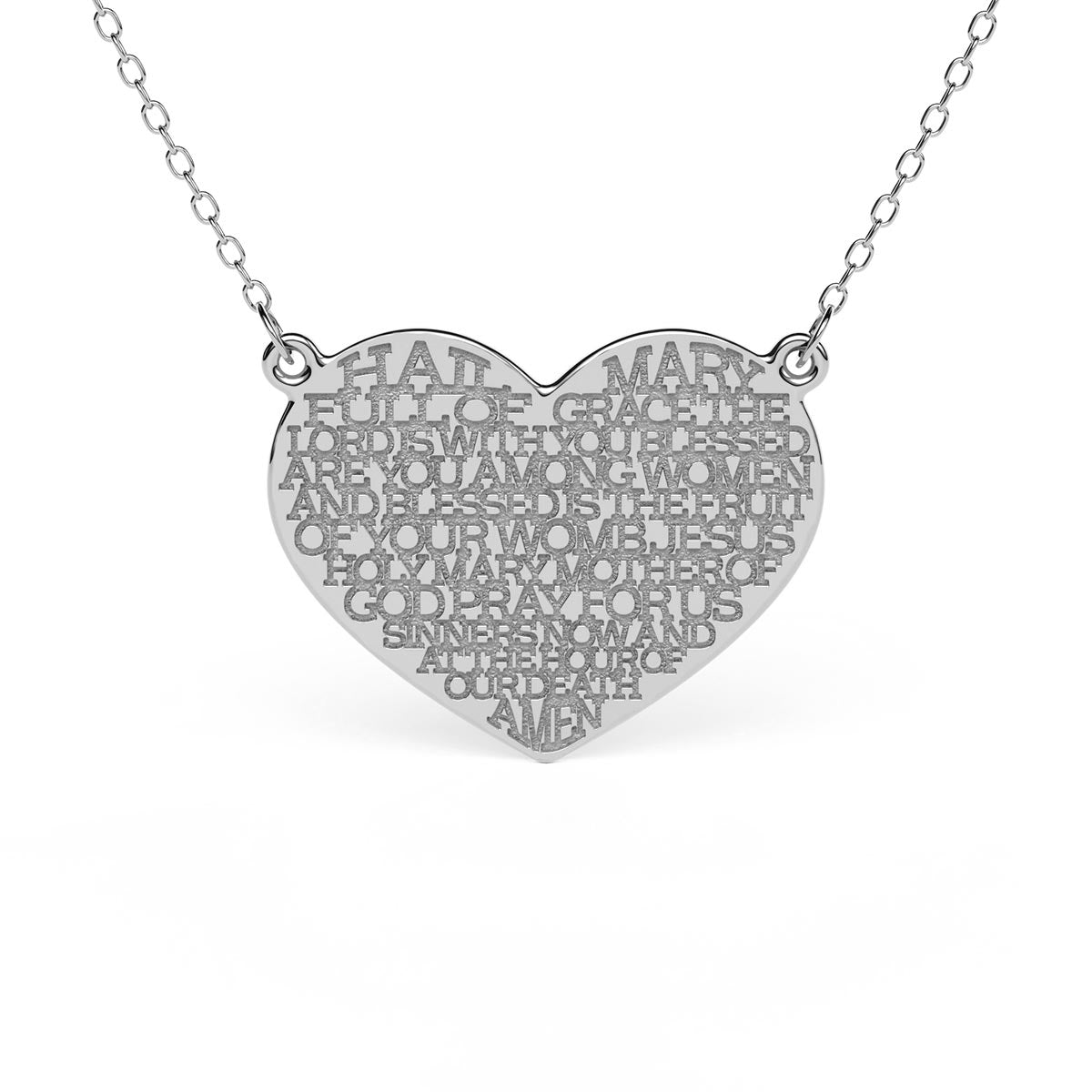 Add a prayer to your necklace stack with the engraved modern Hail Mary heart necklace. A fresh take on religious jewelry, this necklace features a heart-shaped pendant engraved with the words of the Hail Mary. A delicate chain finishes the look.