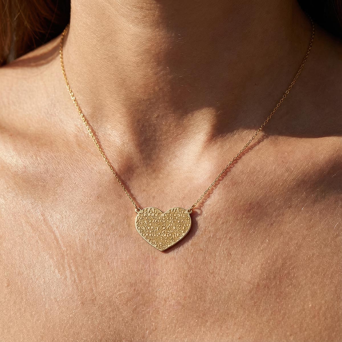 Engraved Modern Hail Mary Heart Necklace