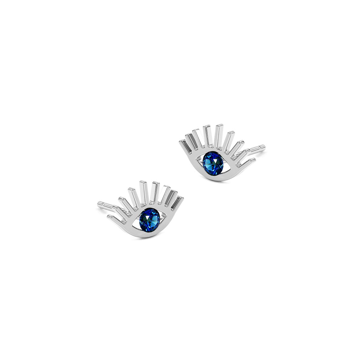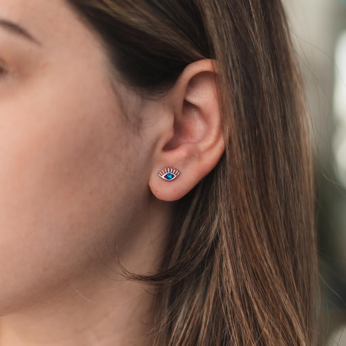 A more modern take on the traditional evil eye designs, these evil eye lash studs are perfect for everyday wear! A delicate SWAROVSKI blue crystal is surrounded by an abstract eyelash design to complete the look.