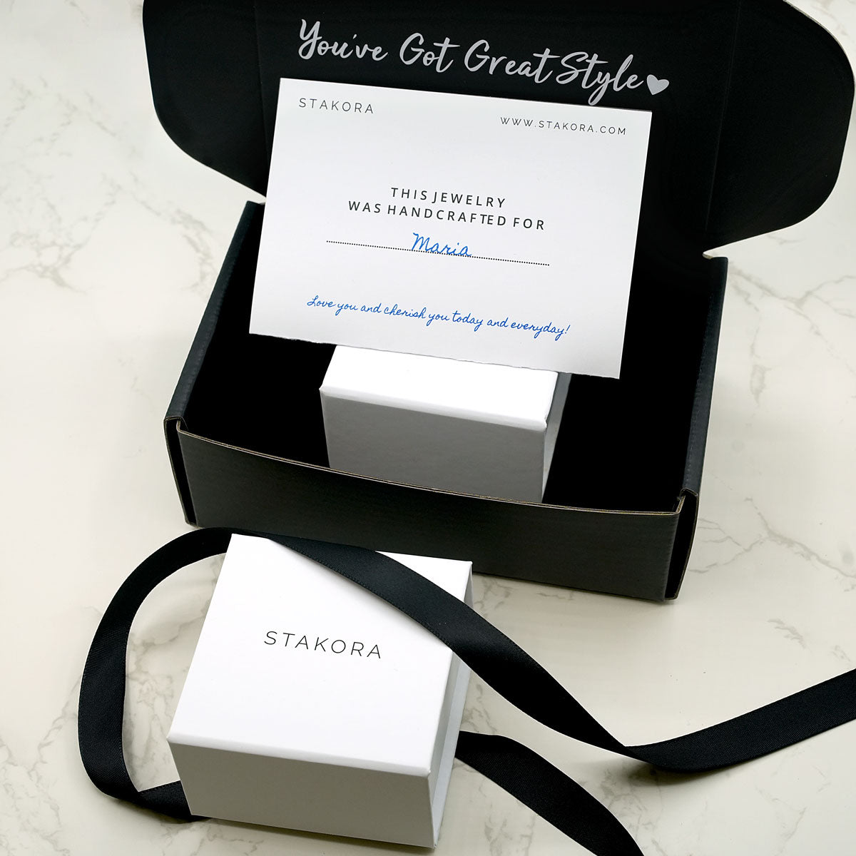 Every order is wrapped in our exclusive holiday packaging, including a jewelry box, Certificate of Authenticity, and an optional heartfelt message card!