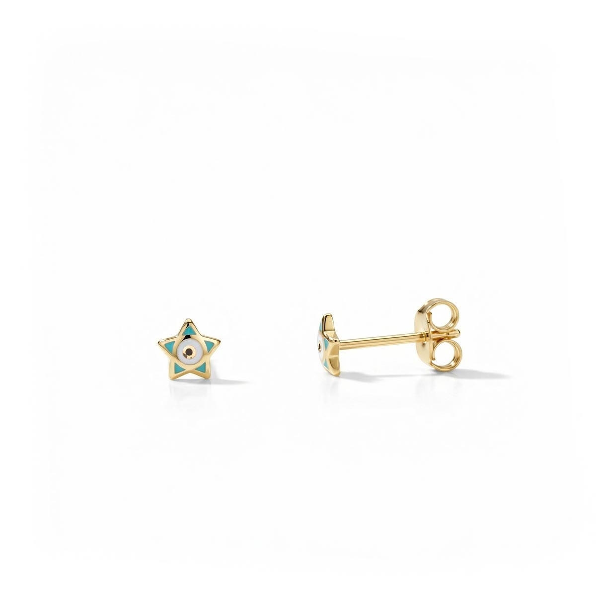 Shine bright with our Mini Star Evil Eye Stud Earrings. These adorable studs combine a delicate star shape with a protective evil eye, creating a whimsical yet symbolic design. Perfect for adding a touch of playful charm and subtle sparkle to your everyday look.