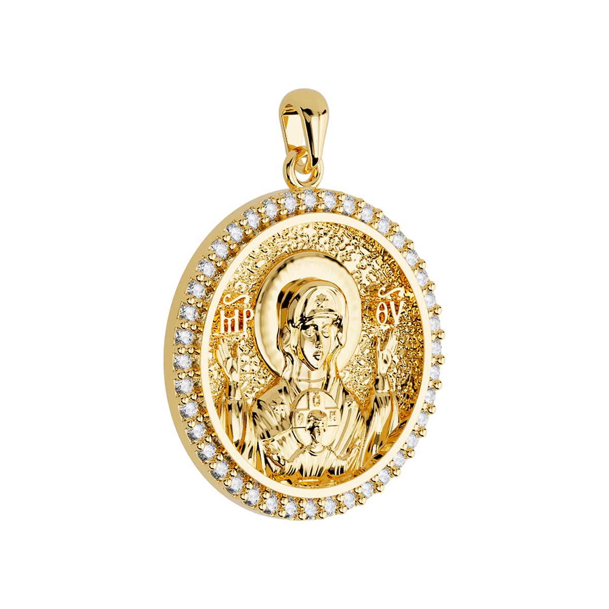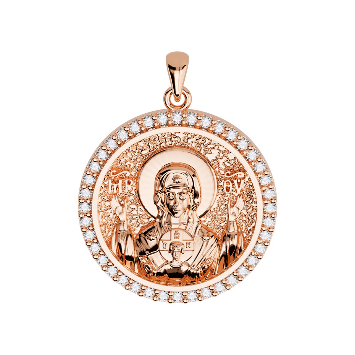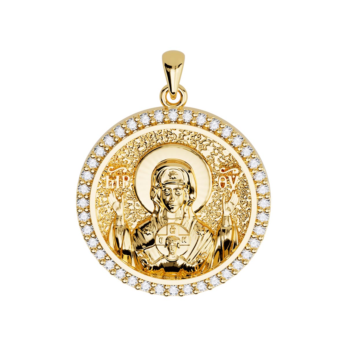 Our Lady of the Sign (Panagia Platytera) Orthodox Icon Sculpted Medium Pavé Round Medal