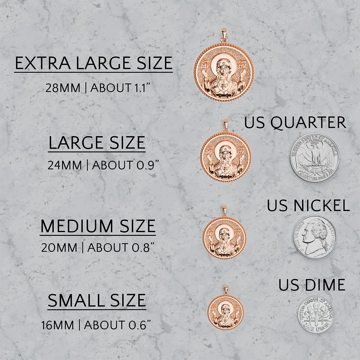 The following weights are approximate and based on 14K solid gold. As each pendant is individually handcrafted and made to order, variations in weight are to be expected. These figures are provided to offer a general reference: