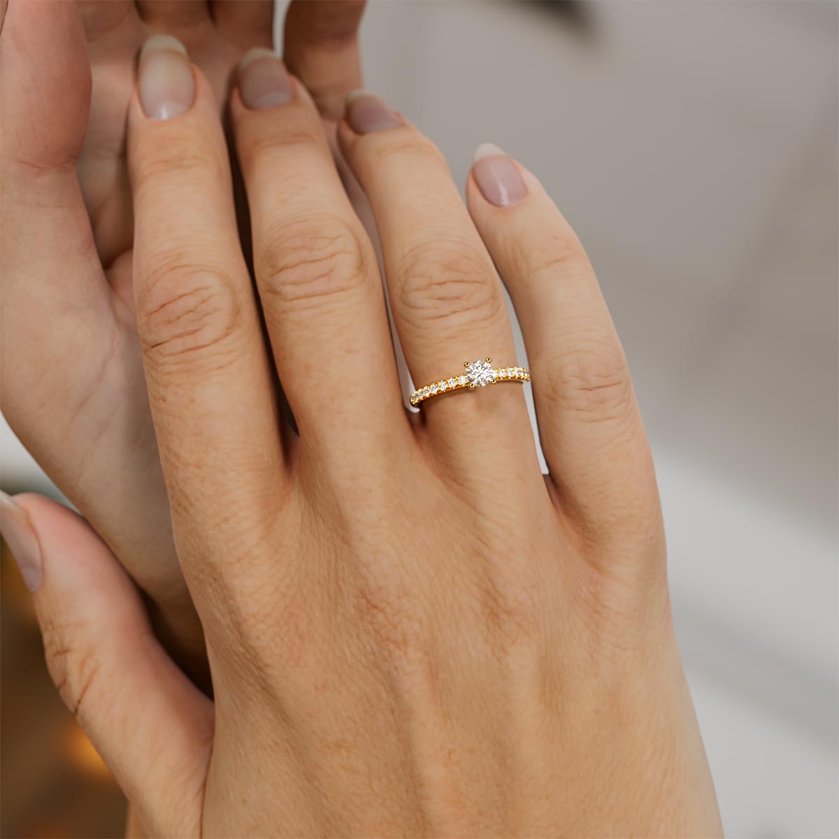 Pavé band 1/4 Ct. Round Diamond Engagement Ring