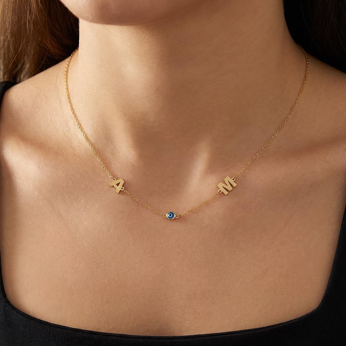 Personalized 2 Initial Necklace With Round Evil Eye Charm