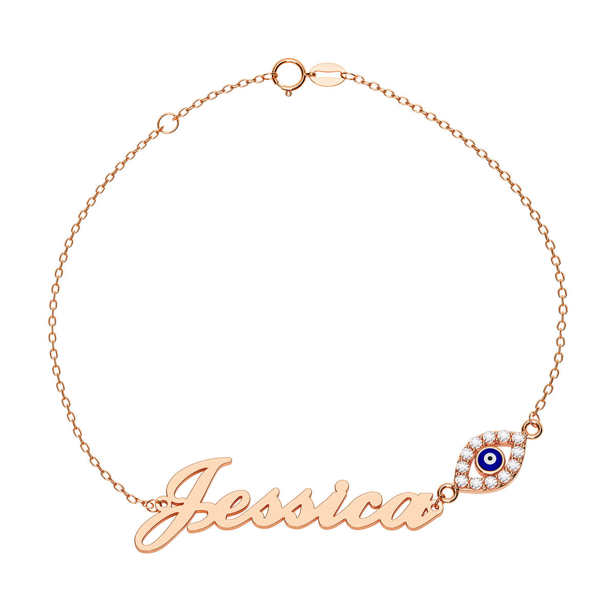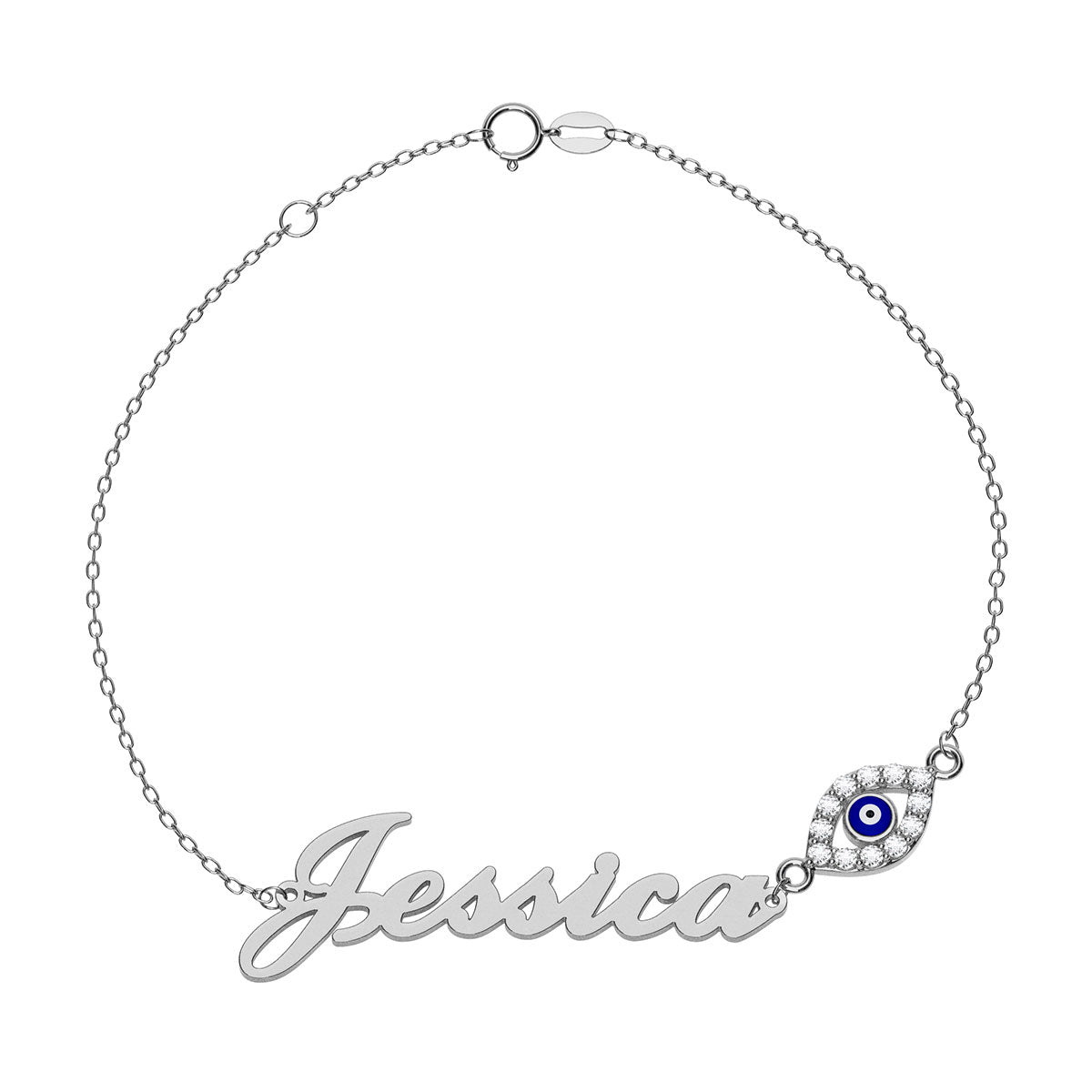 Personalized Name Bracelet With Marquise Evil Eye Pavé Charm