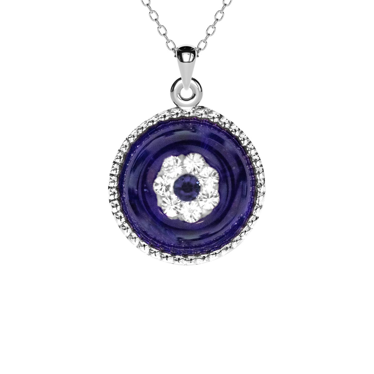 Round Milgrain Blue Crystal Evil Eye Necklace