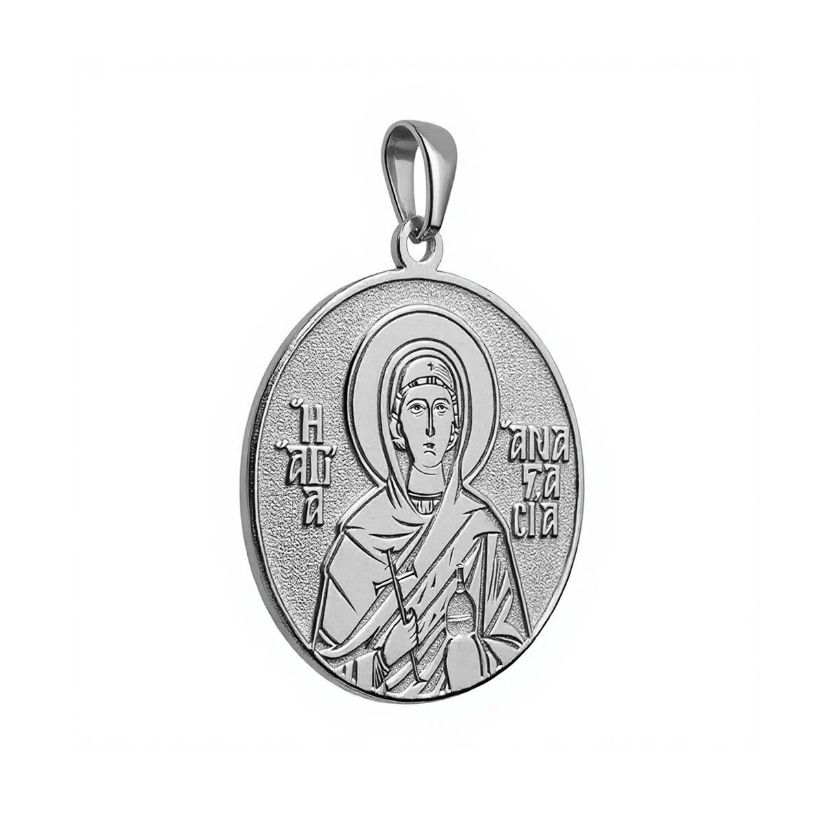 This highly detailed, historically accurate representation of the Greek Orthodox icon of Saint Anastasia of Sirmium is engraved into a round medal in the metal of your choice. Available with or without a chain, this piece makes for the perfect gift for yourself, or for a special someone’s name day! Saint Anastasia was a Christian martyr who was martyred during the Diocletianic Persecution in the early 4th century. She was subjected to various tortures, including being burned alive, for her refusal to renounce her faith. She is venerated as a saint in the Eastern Orthodox Church and the Roman Catholic Church.