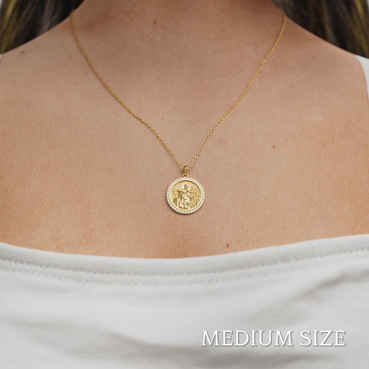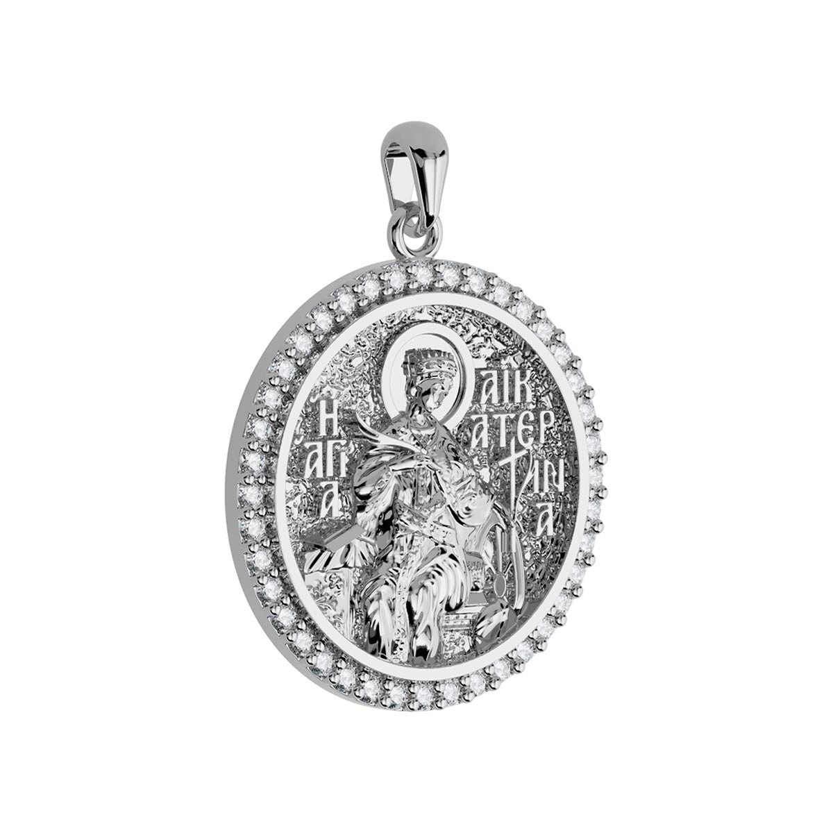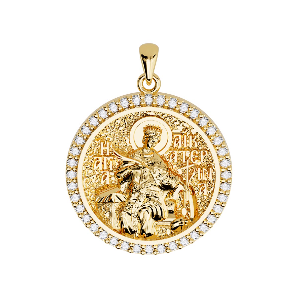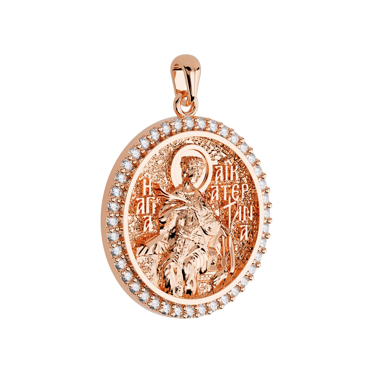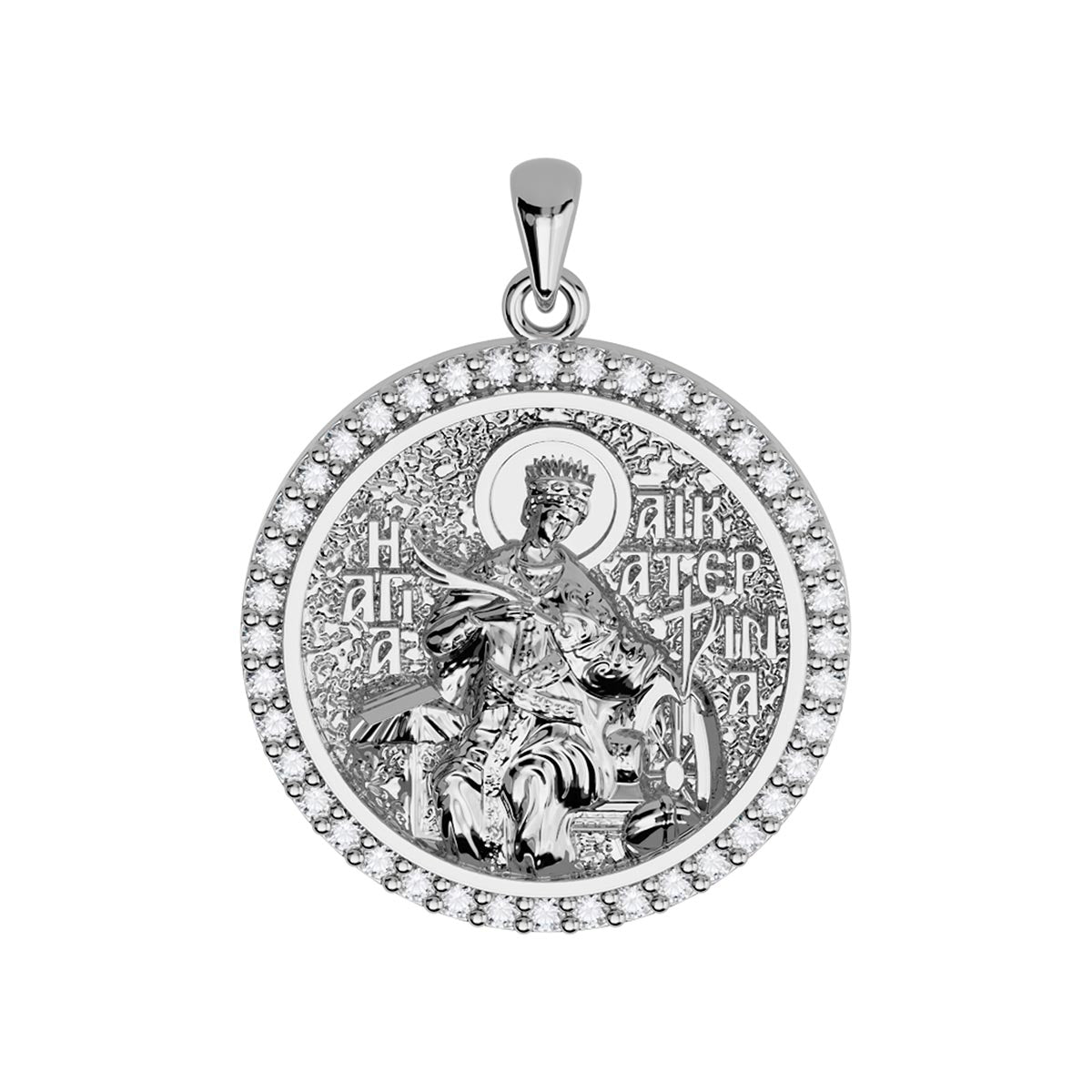 Saint Catherine (Katherine) Orthodox Icon Sculpted Medium Pavé Round Medal