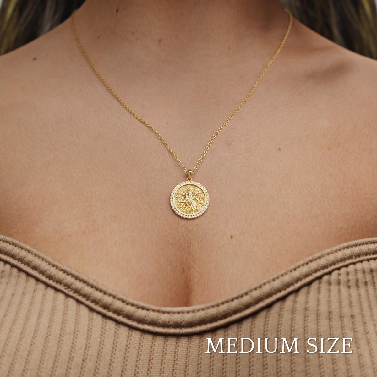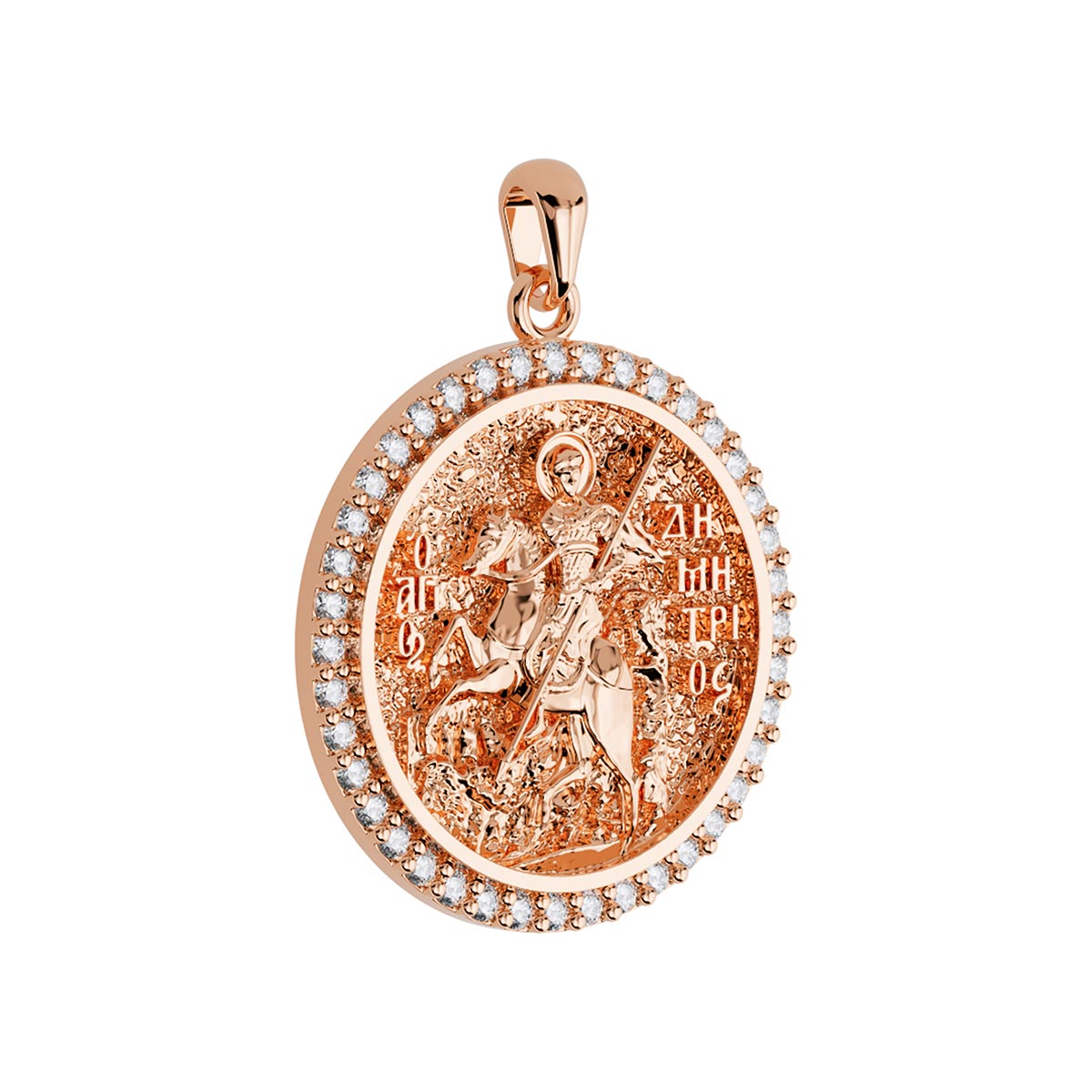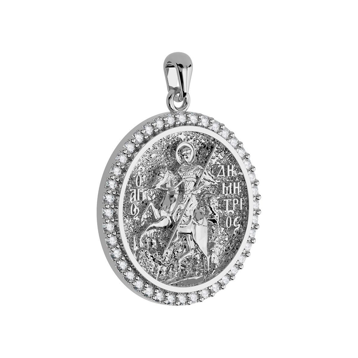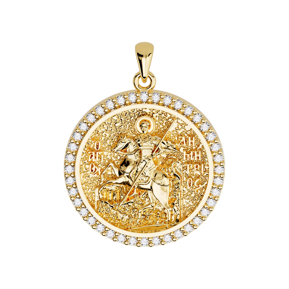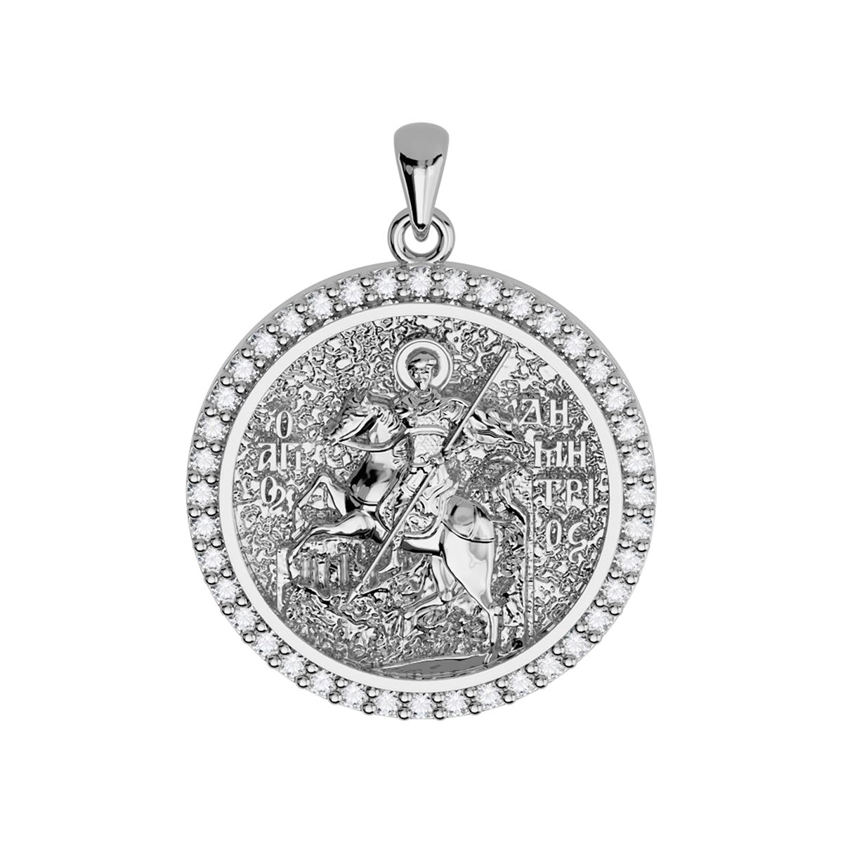 Saint Demetrios (Demetrius) Orthodox Icon Sculpted Medium Pavé Round Medal