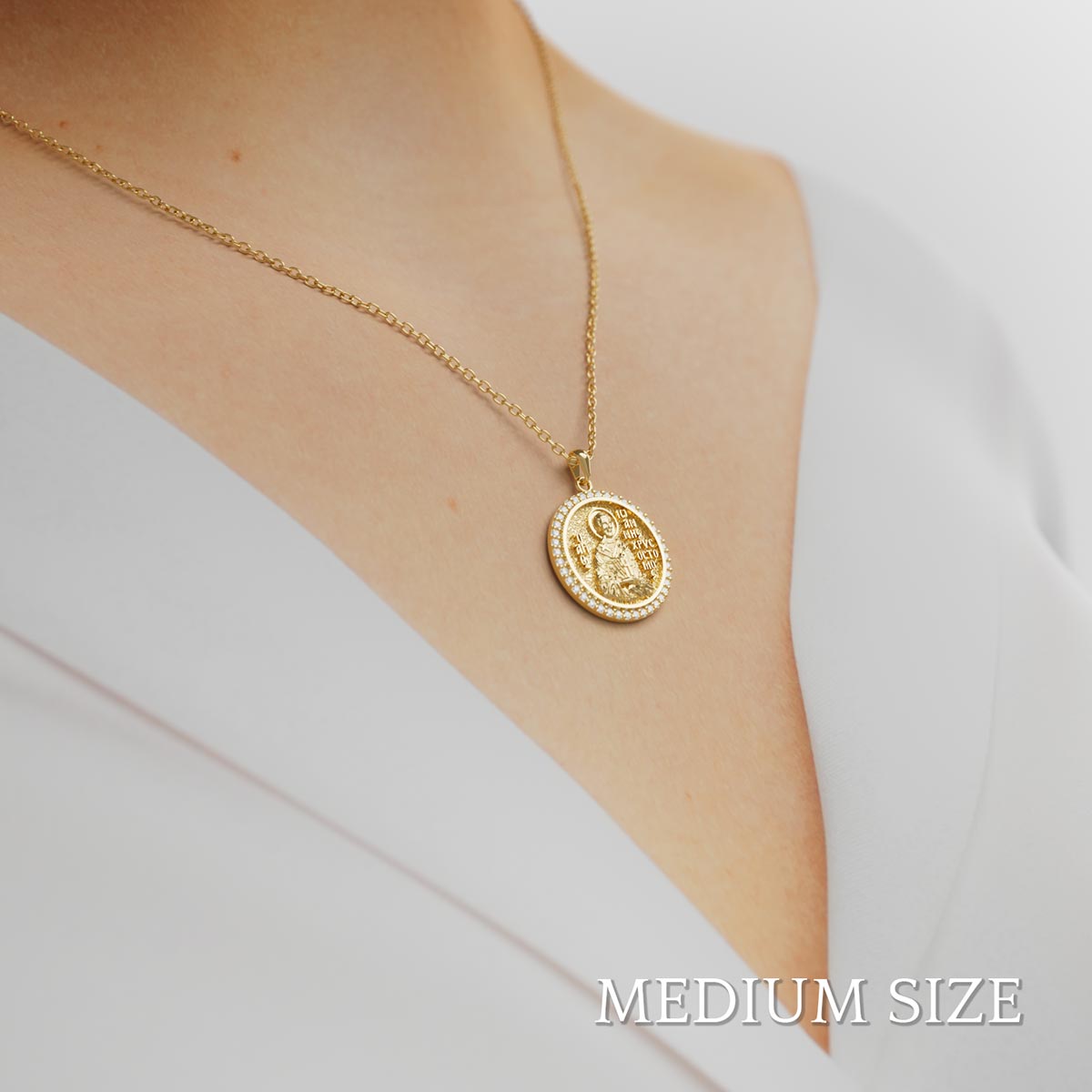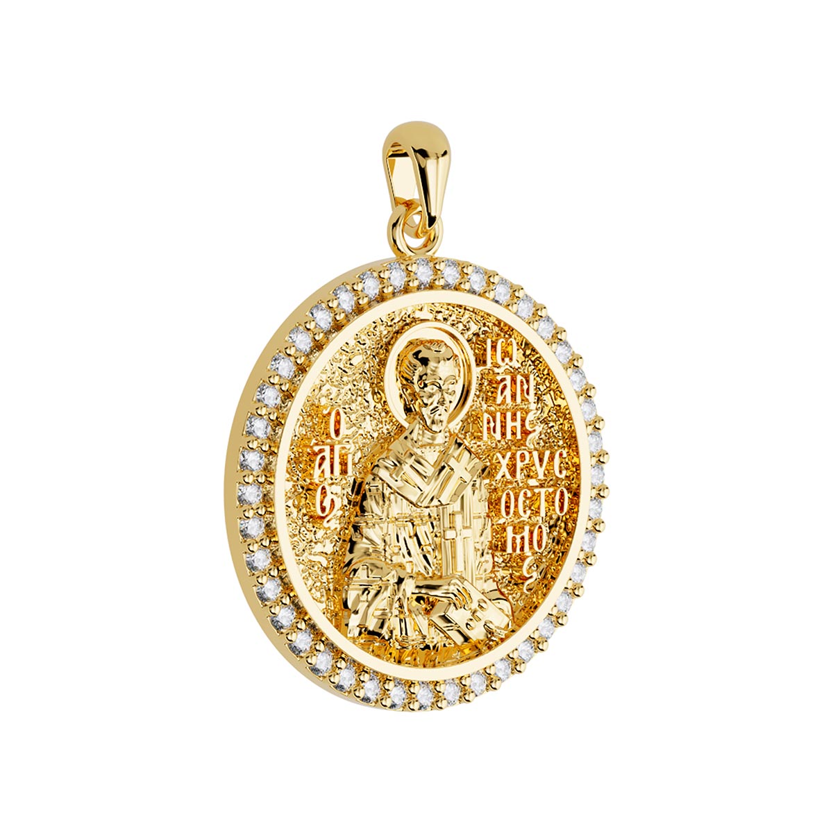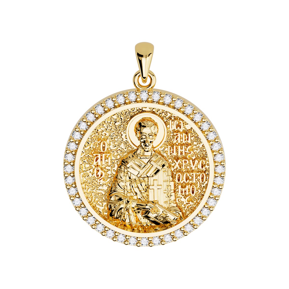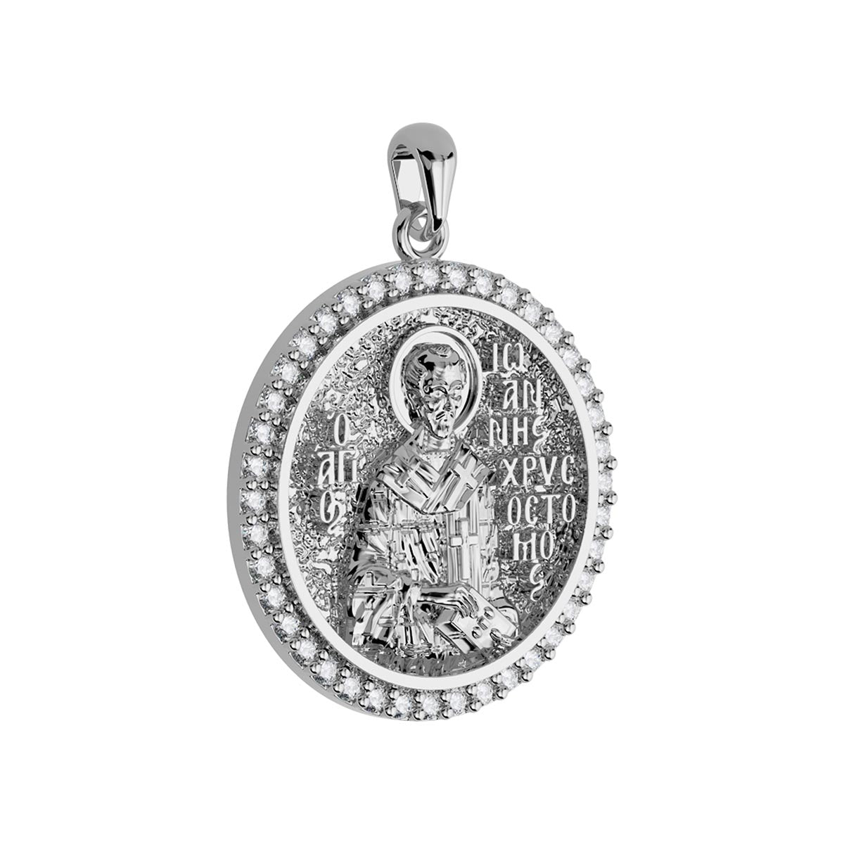 Saint John (Ioannis) Chrysostom Orthodox Icon Sculpted Medium Pavé Round Medal