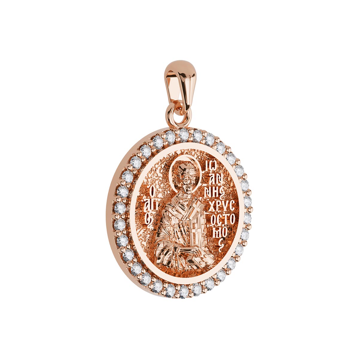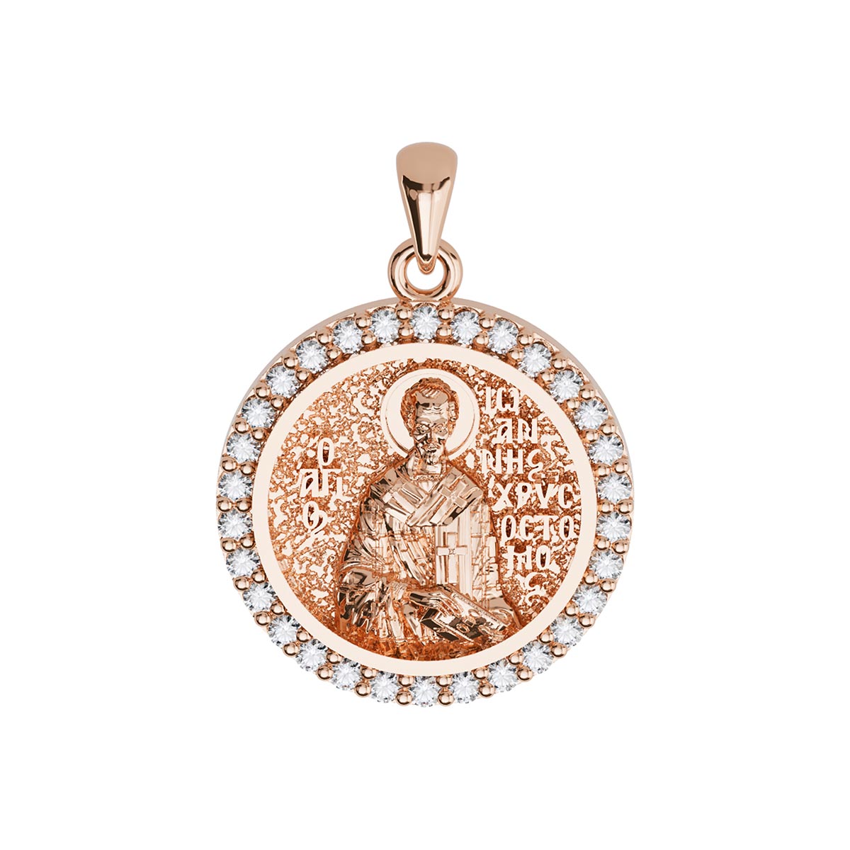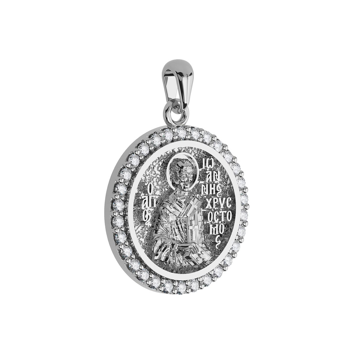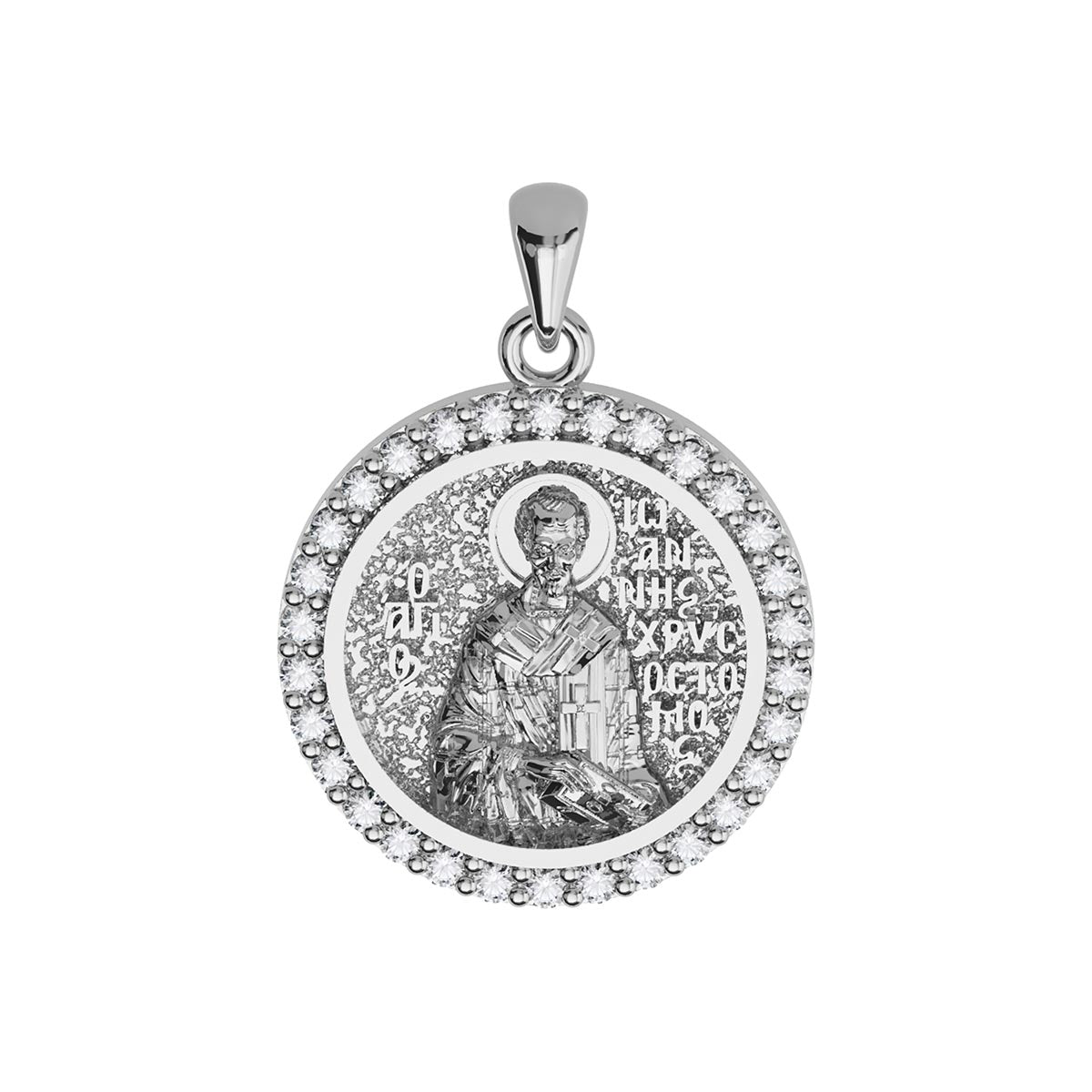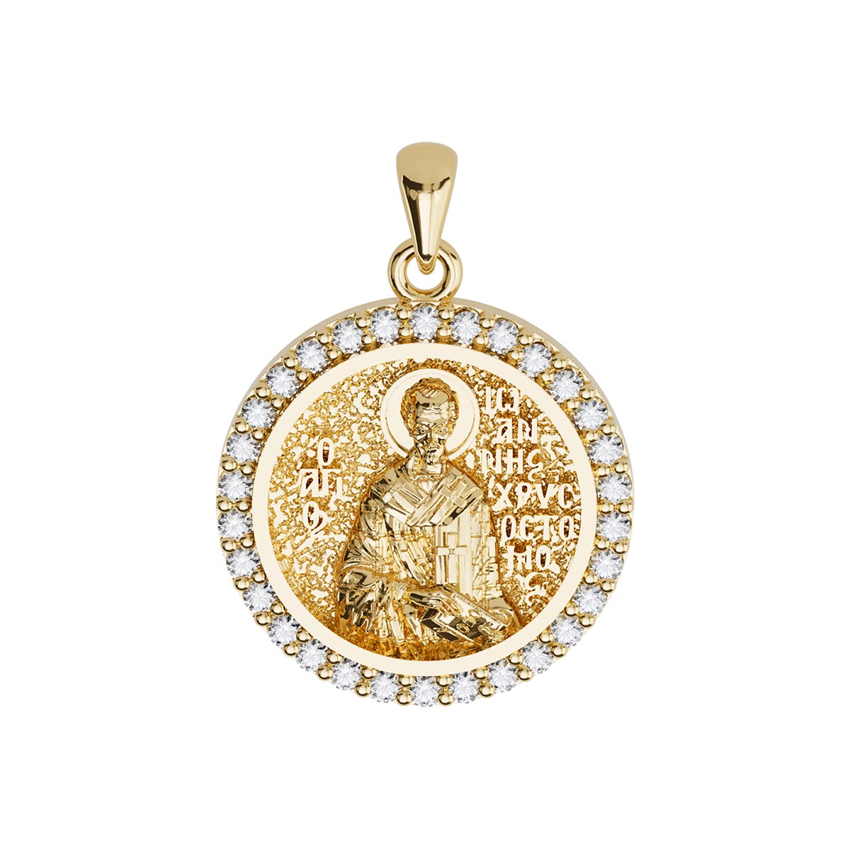Saint John (Ioannis) Chrysostom Orthodox Icon Sculpted Small Pavé Round Medal