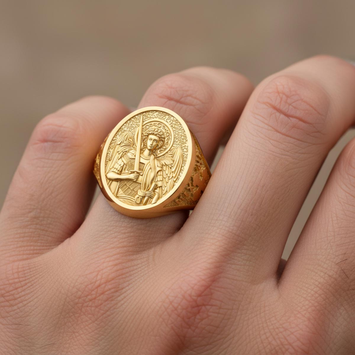 Saint Michael the Archangel Orthodox Icon Sculpted Signet Ring