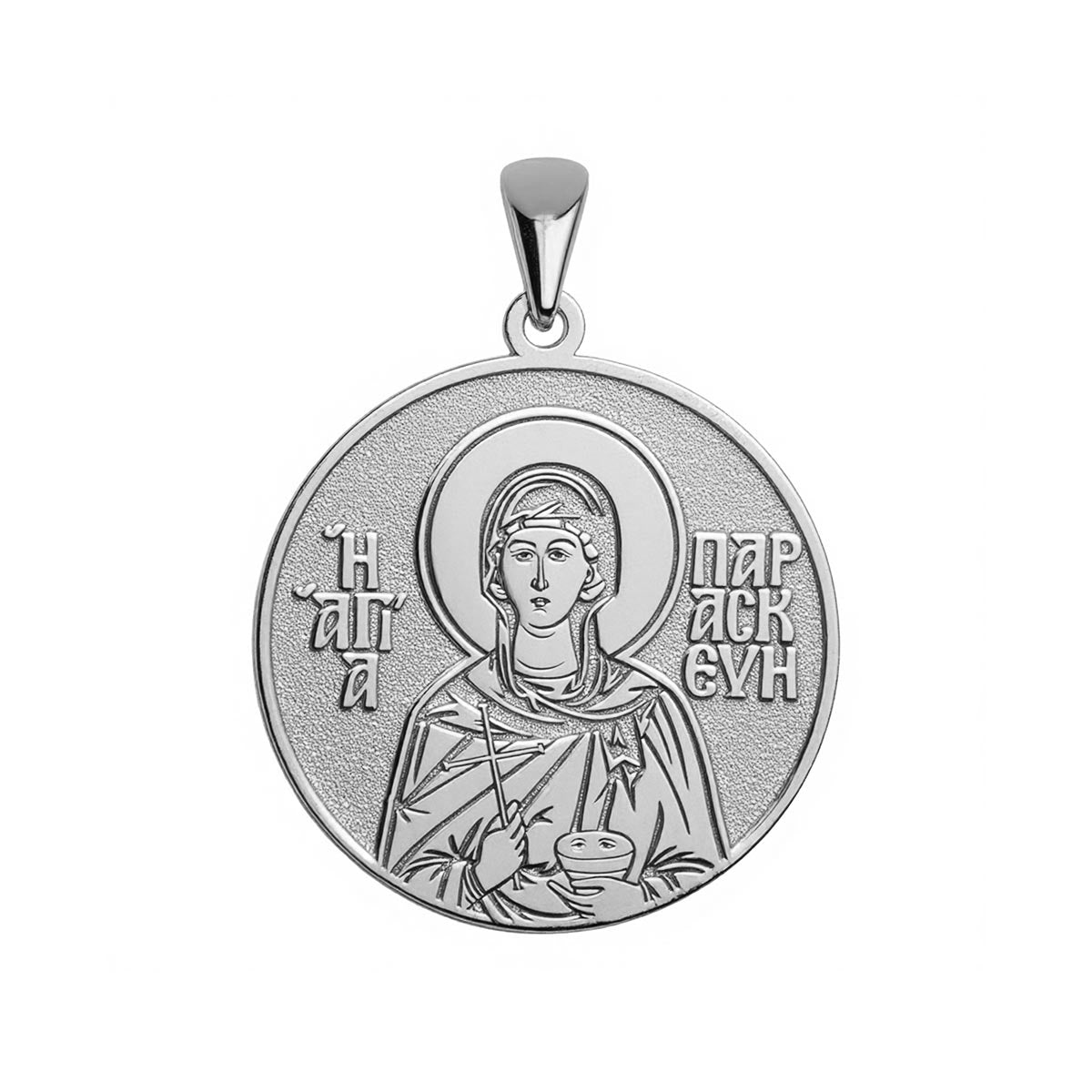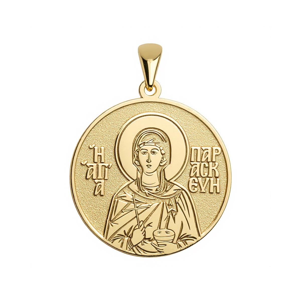 This highly detailed, historically accurate representation of the Greek Orthodox icon of Saint Paraskevi of Rome is engraved into a round medal in the metal of your choice. Available with or without a chain, this piece makes for the perfect gift for yourself, or for a special someone’s name day! Saint Paraskevi of Rome was a Christian martyr during the reign of Emperor Antoninus Pius. Her name means "Friday" in Greek, and she is venerated for her chastity and miracles, particularly the healing of eye ailments.