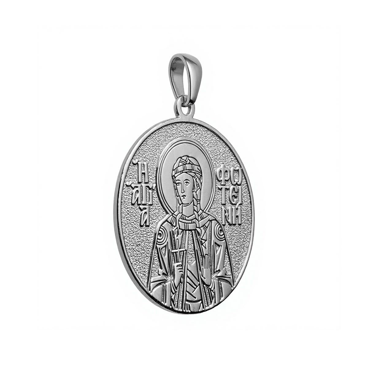 This highly detailed, historically accurate representation of the Greek Orthodox icon of Photini (Fotini) the Samaritan is engraved into a round medal in the metal of your choice. Available with or without a chain, this piece makes for the perfect gift for yourself, or for a special someone’s name day! Saint Photini (Fotini) the Samaritan is also known as the "Woman at the Well". She is remembered for her encounter with Jesus at Jacob's well, where he revealed himself as the Messiah. She later became a disciple and evangelist, spreading the message of Christ throughout the region.