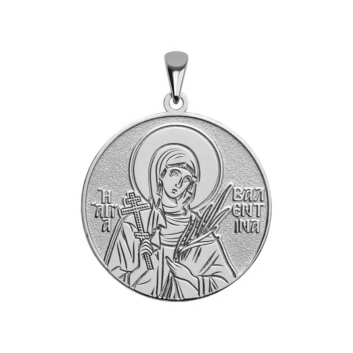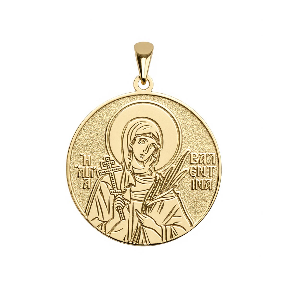This highly detailed, historically accurate representation of the Greek Orthodox icon of Saint Valentina is engraved into a round medal in the metal of your choice. Available with or without a chain, this piece makes for the perfect gift for yourself, or for a special someone’s name day! Saint Valentina was a 2nd-century martyr who suffered persecution for her Christian faith. She remained steadfast in her beliefs and was ultimately martyred for her refusal to renounce Christianity.