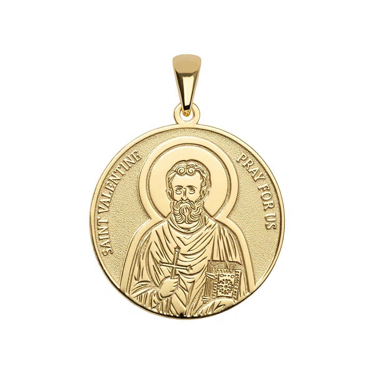 The Saint Valentine Round Religious Medal is a remarkable piece of jewelry available in solid gold or sterling silver. It features the image of Saint Valentine, the patron saint of love and couples, with the words "Saint Valentine Pray For Us" delicately carved into a round medal. This religious medal is perfect for those celebrating love and relationships, carrying a symbol of devotion and affection. With its intricate details and impeccable finishing, this medal is a timeless and inspiring accessory meant to uplift and empower the wearer.