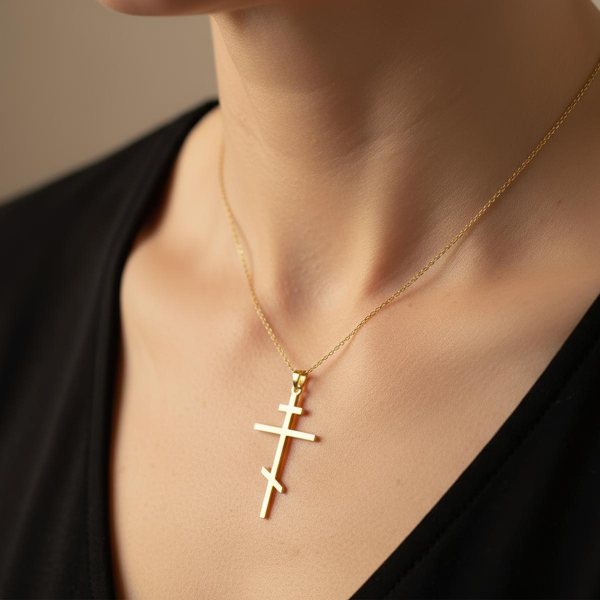 Embrace timeless devotion with our Slim Modern Orthodox Cross. This exquisitely crafted piece embodies faith and contemporary elegance. Its slender silhouette offers a refined, understated aesthetic, perfect for everyday wear or special occasions. Fashioned from premium materials, its luminous finish radiates a quiet, sophisticated charm. A truly meaningful symbol of spiritual connection, this cross is a luxurious addition to any jewelry collection, designed for those who appreciate subtle beauty and profound significance.