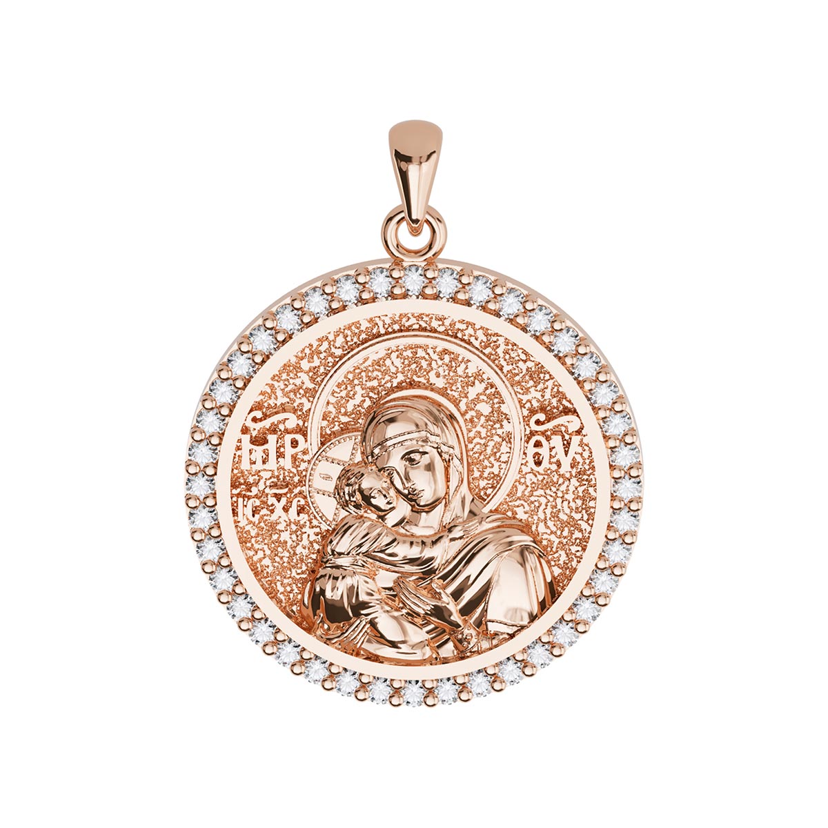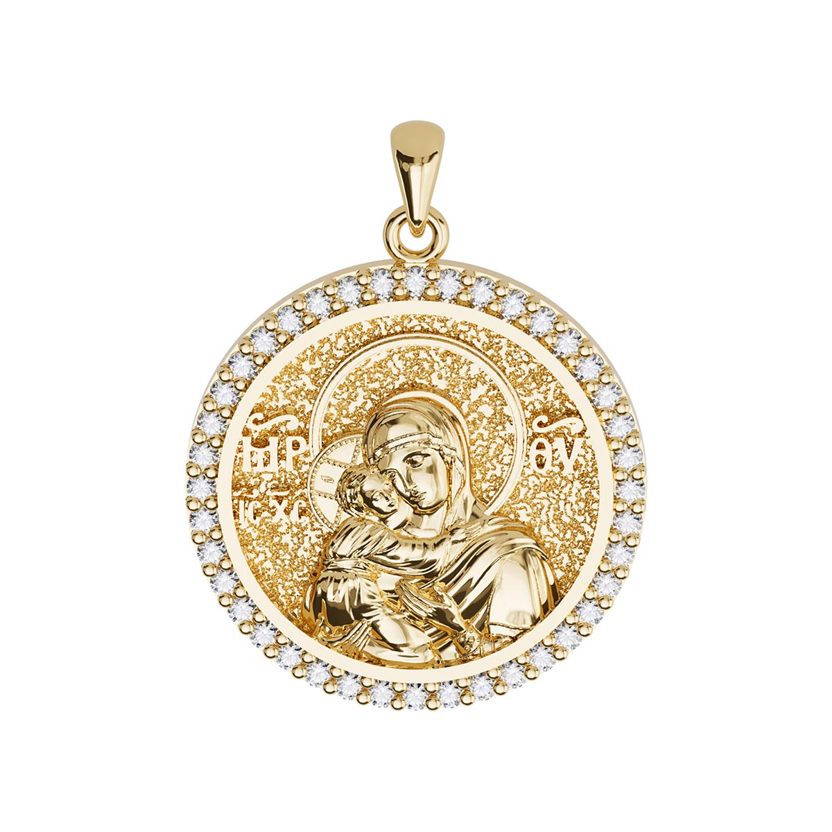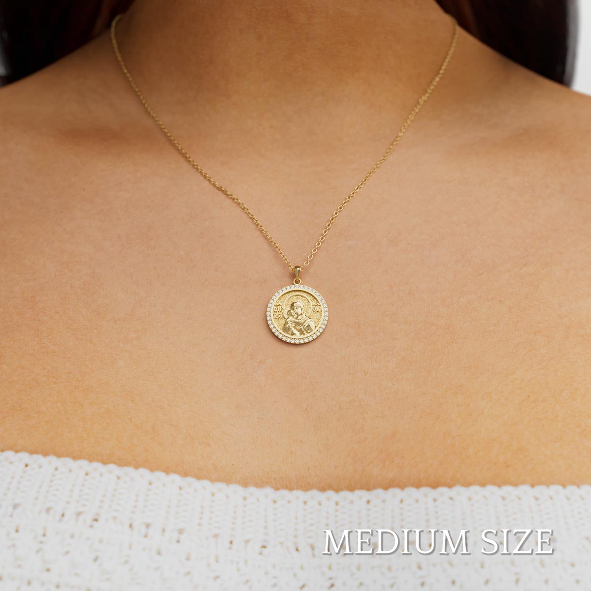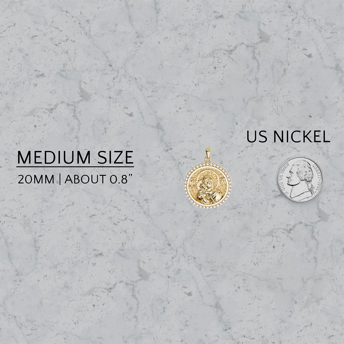 Virgin Mary Panagia Theotokos Orthodox Icon Sculpted Medium Pavé Round Medal