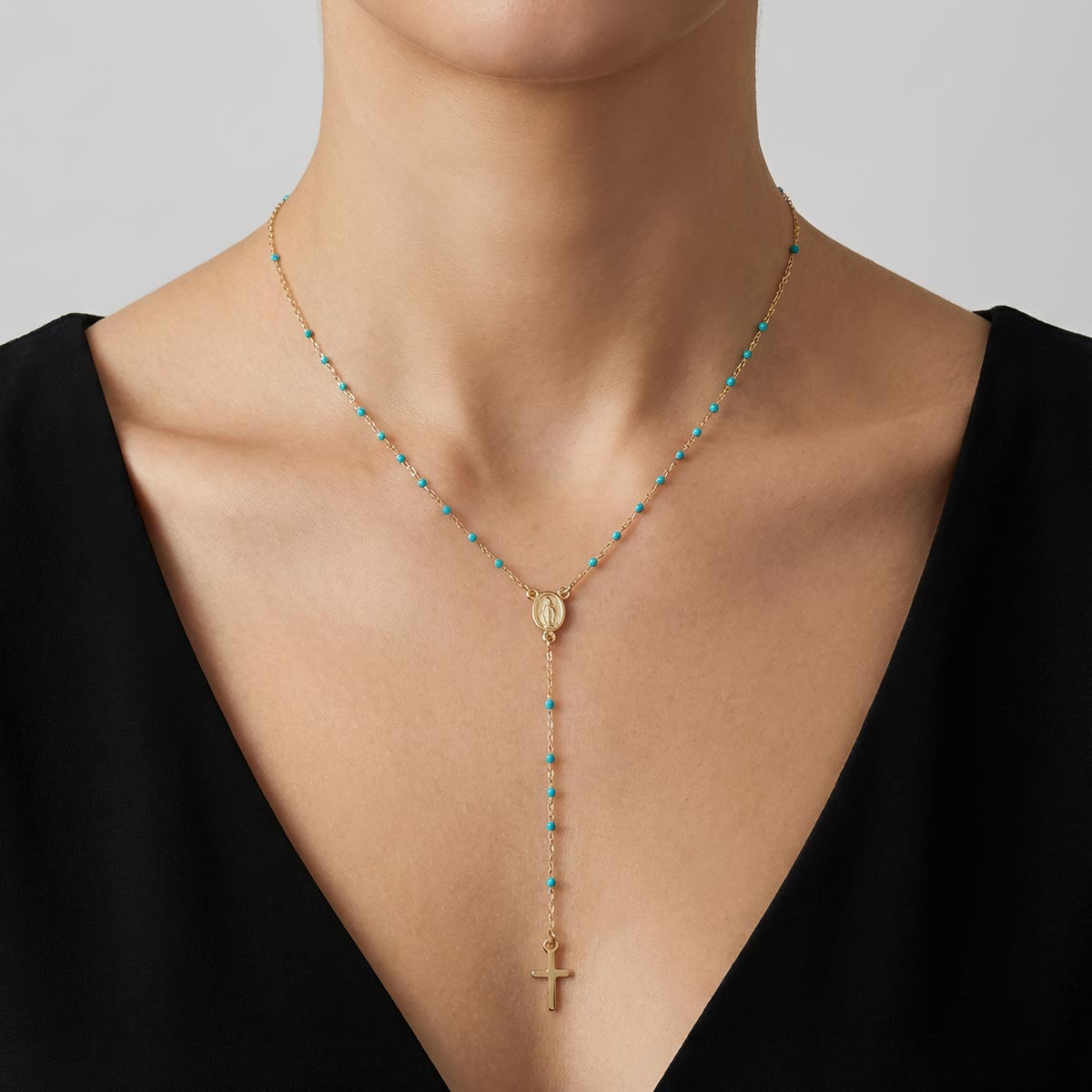 Miraculous Rosary Necklace with Turquoise Beads