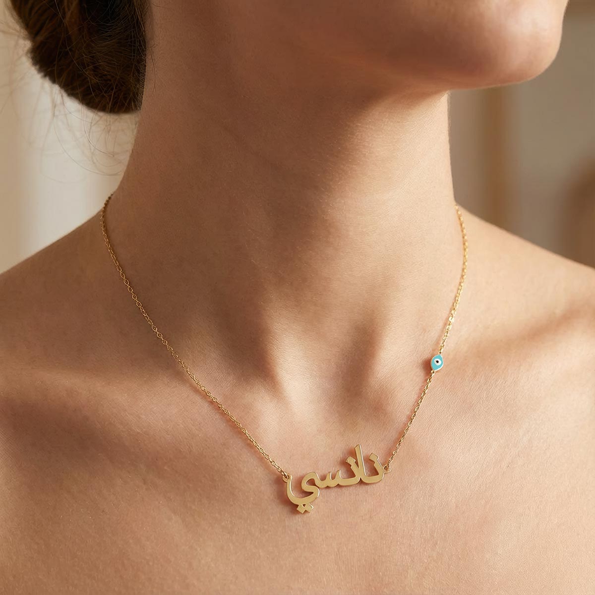 Arabic Personalized Name Necklace With Turquoise Evil Eye Chain Charm