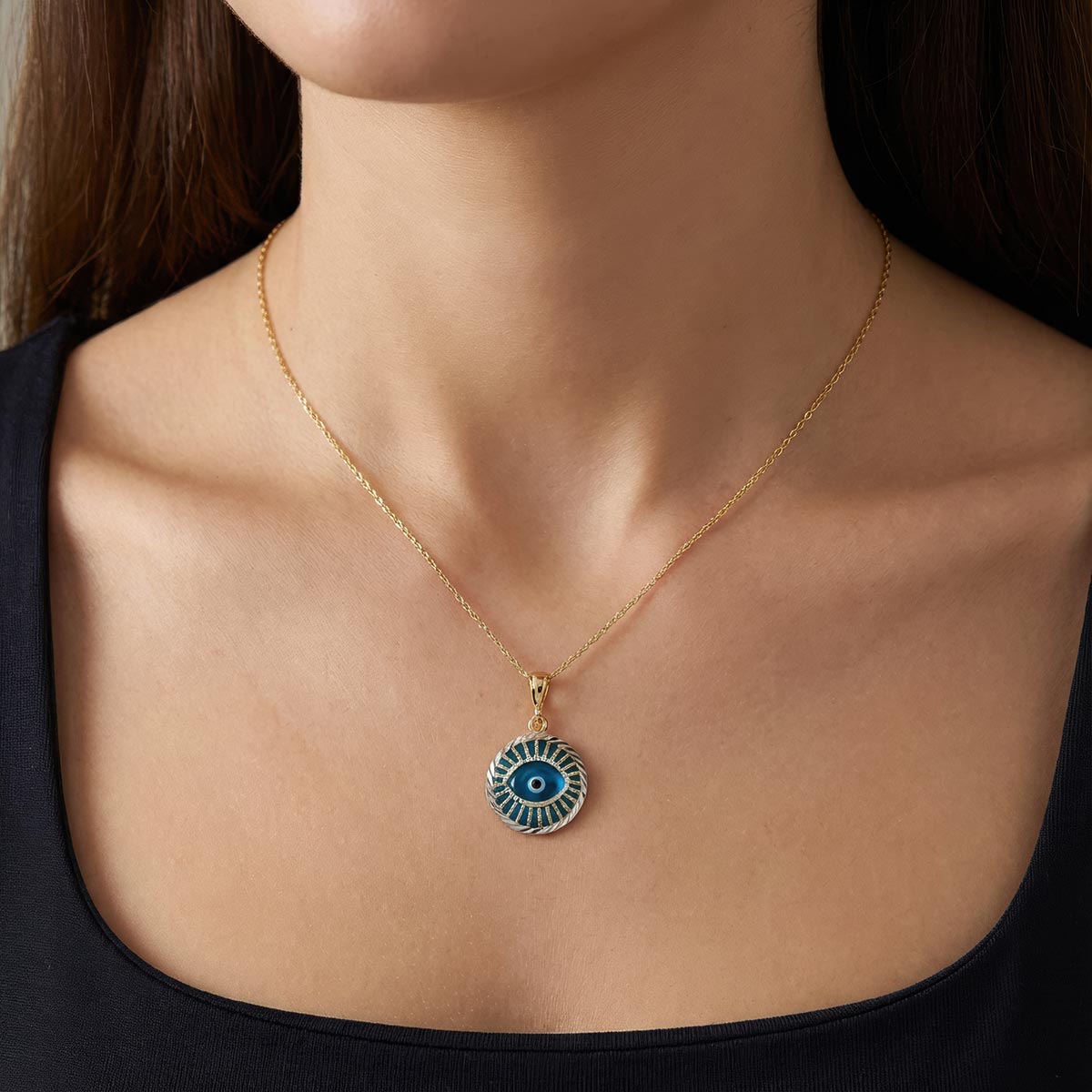 Add a touch of mystical elegance to your collection with this exquisite Diamond-Cut Round Evil Eye Pendant. Crafted with precision, this pendant features a mesmerizing evil eye motif, symbolizing protection and good fortune. The diamond-cut detailing on the frame adds a sophisticated sparkle, catching the light beautifully. Suspended from a lustrous bail, this pendant is a perfect blend of timeless tradition and contemporary luxury. It's an ideal accessory to elevate any outfit, offering both style and meaningful charm.
