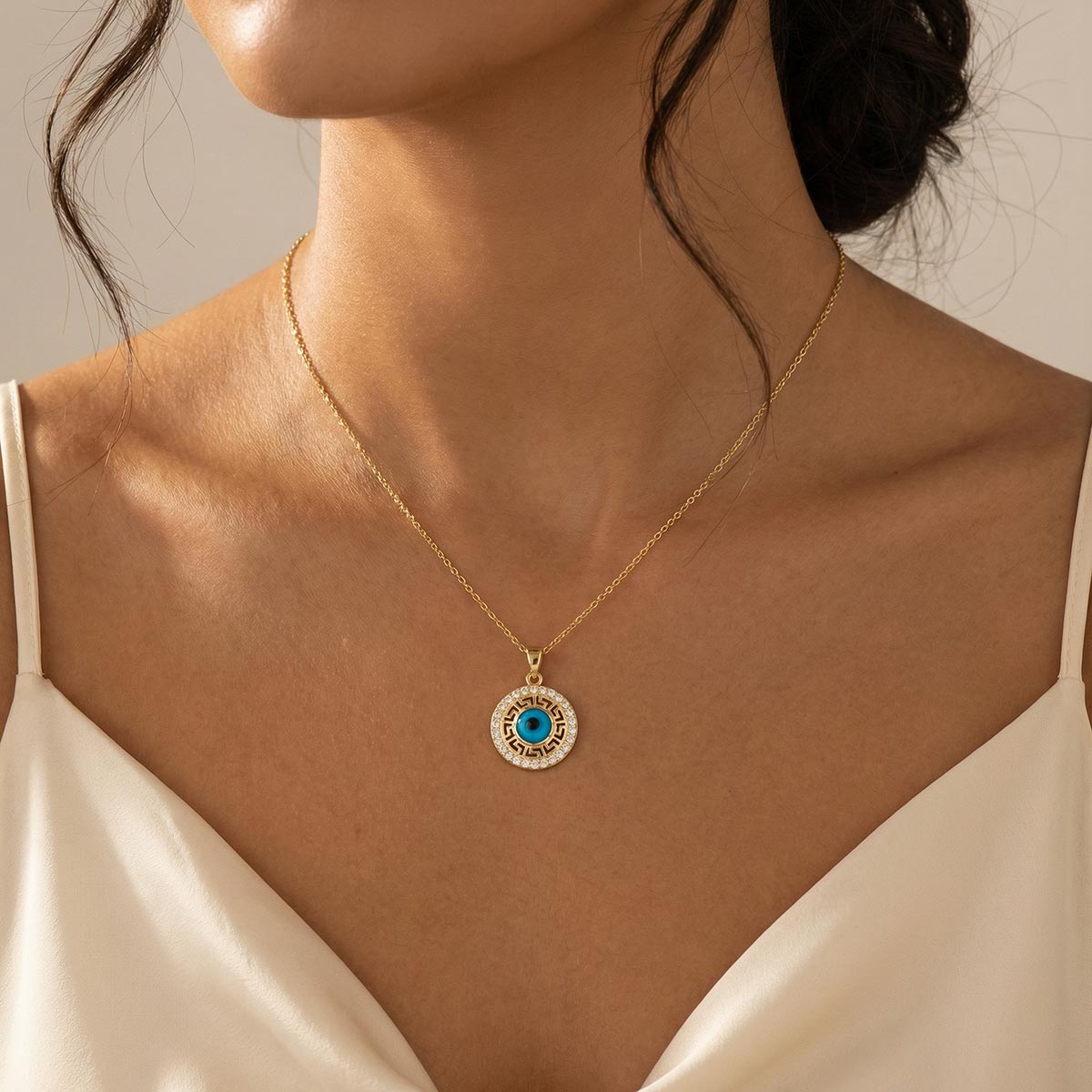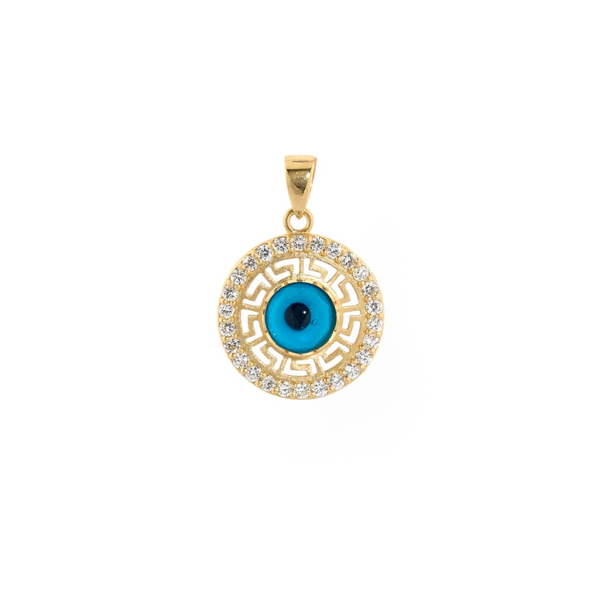 Evil Eye Greek Key Diamond Pendant