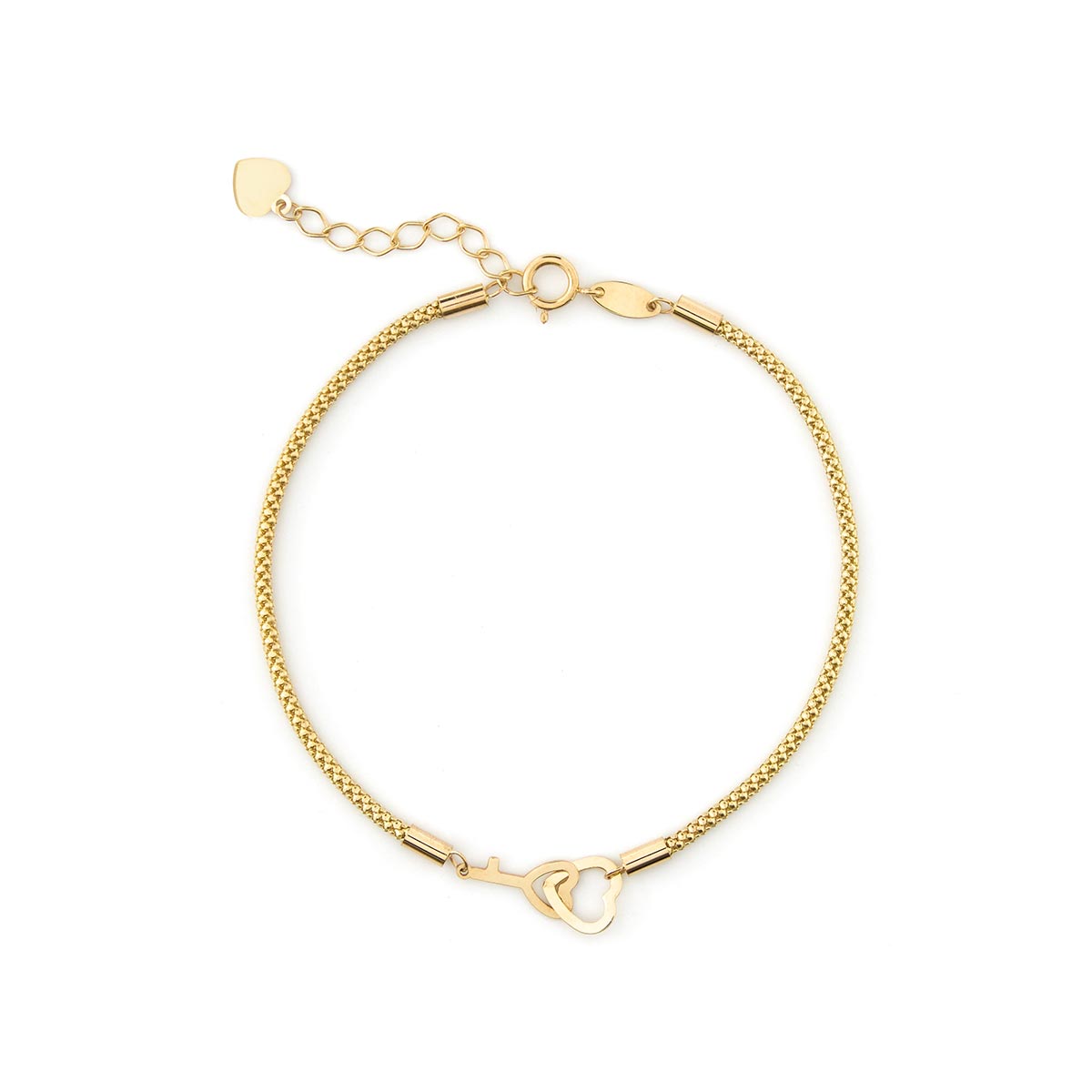 Interlocking Heart and Key Popcorn Chain Bracelet