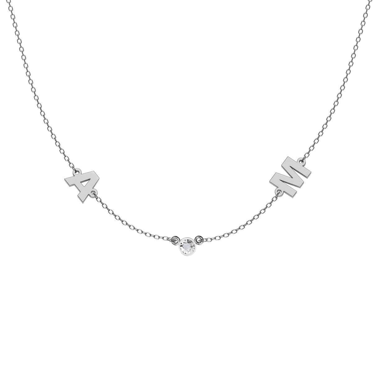 Personalized 2 Initial Necklace With Stone Bezel Charm
